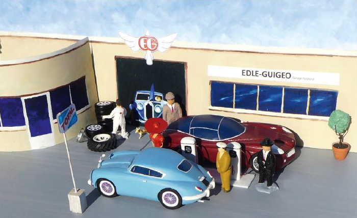 Ainsi, le constructeur Edlé-Guigeo (Ed pour Edouard, Lé pour Léopold, Gui pour Guillaume et Geo pour Geoffroy) traverse les âges des années 40 à nos jours à travers des modèles de série et d’autres de compétition. C’est un travail titanesque et des plus rigoureux qui a été réalisé pour que le rêve d’une famille puisse voir le jour dans un esprit pédagogique. En effet, créer une société, aussi virtuelle qu’elle soit, demande certaines règles et beaucoup de persévérance. Les valeurs d’unité familiale, de partage et d’entraide étant les points communs et fondateurs entre une famille et une société. Dès le commencement, chaque membre de la famille à trouver son poste, comme nous l’explique François : « Chacun avec son talent s’est positionné naturellement pour faire évoluer Edlé-Guigeo, comme Edouard, plus passionné de théâtre et de spectacle que de voitures, qui a conçu les décors en y incluant des personnages. »