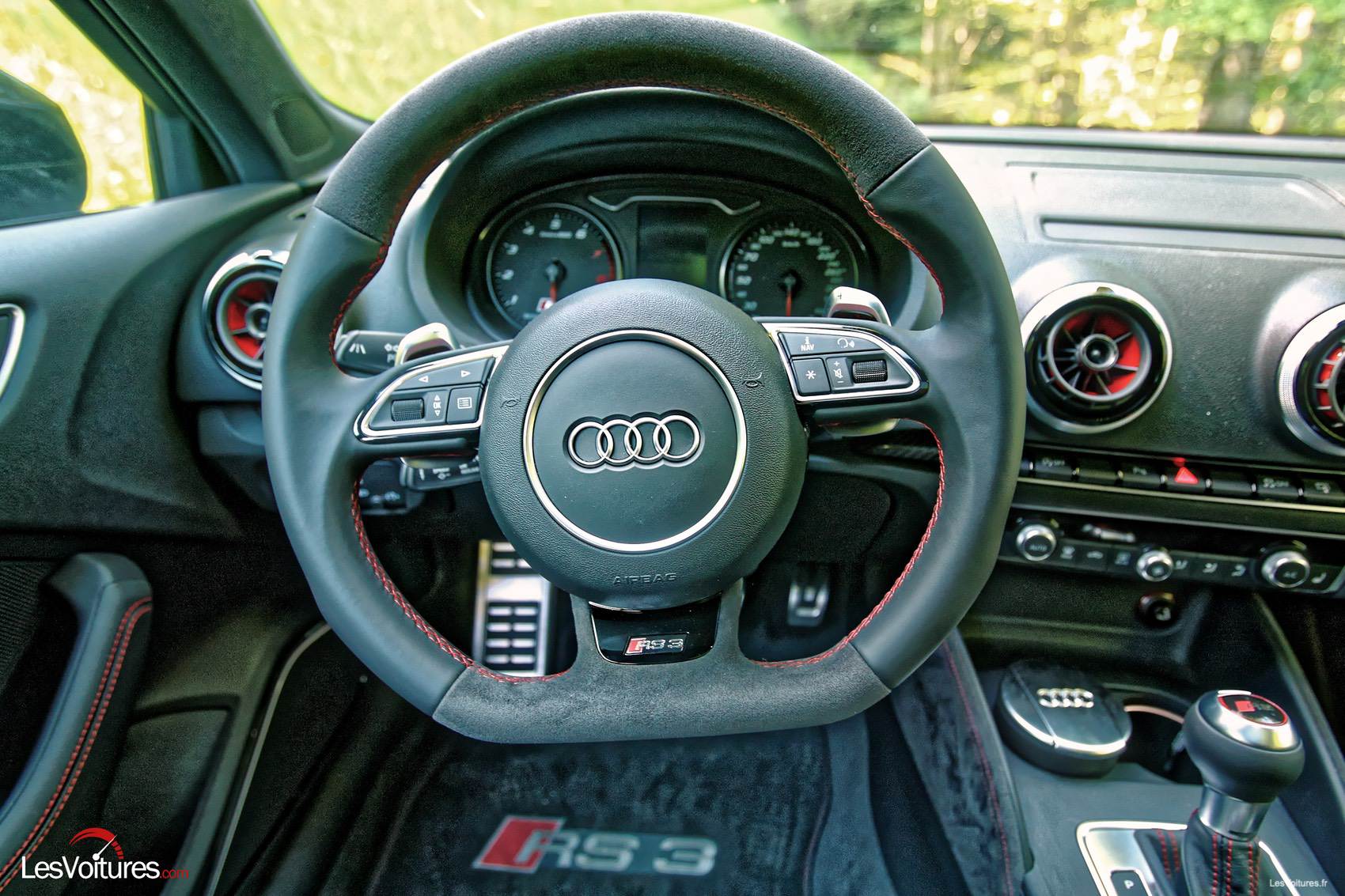 Pour conclure, la RS 3 Sportback est redoutable de puissance et d’efficacité. Alliant les performances et les sensations d’une supersportive à un design relativement sobre et à la fonctionnalité d’un mini-break compact, l’Audi RS 3 Sportback 2015 a tout pour séduire les jeunes pères fougueux. Ou n’importe qui désirant un véhicule polyvalent dopé aux Watts. A condition cependant d’avoir la bourse bien remplie. Car si le diable se cache dans un dernier détail, c’est bien le prix ! Avec une tarification débutant à 56 900 € et un catalogue d’options long comme le bras, l’Audi RS 3 Sportback reste une voiture d’exception. Notre véhicule d’essai, bien qu’enchanteur, était ainsi proposé au tarif de 66 700 €. Soit 9 800 € d’options comprenant, entre autres, le système de navigation, l’Audi Connect, la sortie d’échappement Sport RS, l’Audi Magnetic Ride, un système son Bang & Olufsen, les jantes 19’’ en hélice noir anthracite et les sièges baquets RS. Séduit(e) ? Rendez-vous en juin dans les concessions !