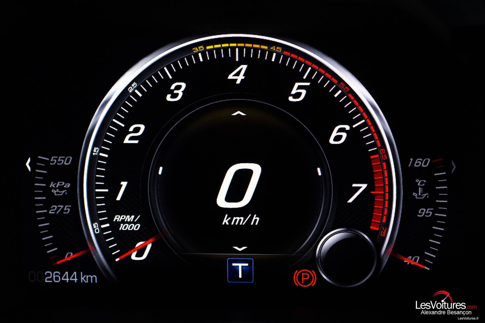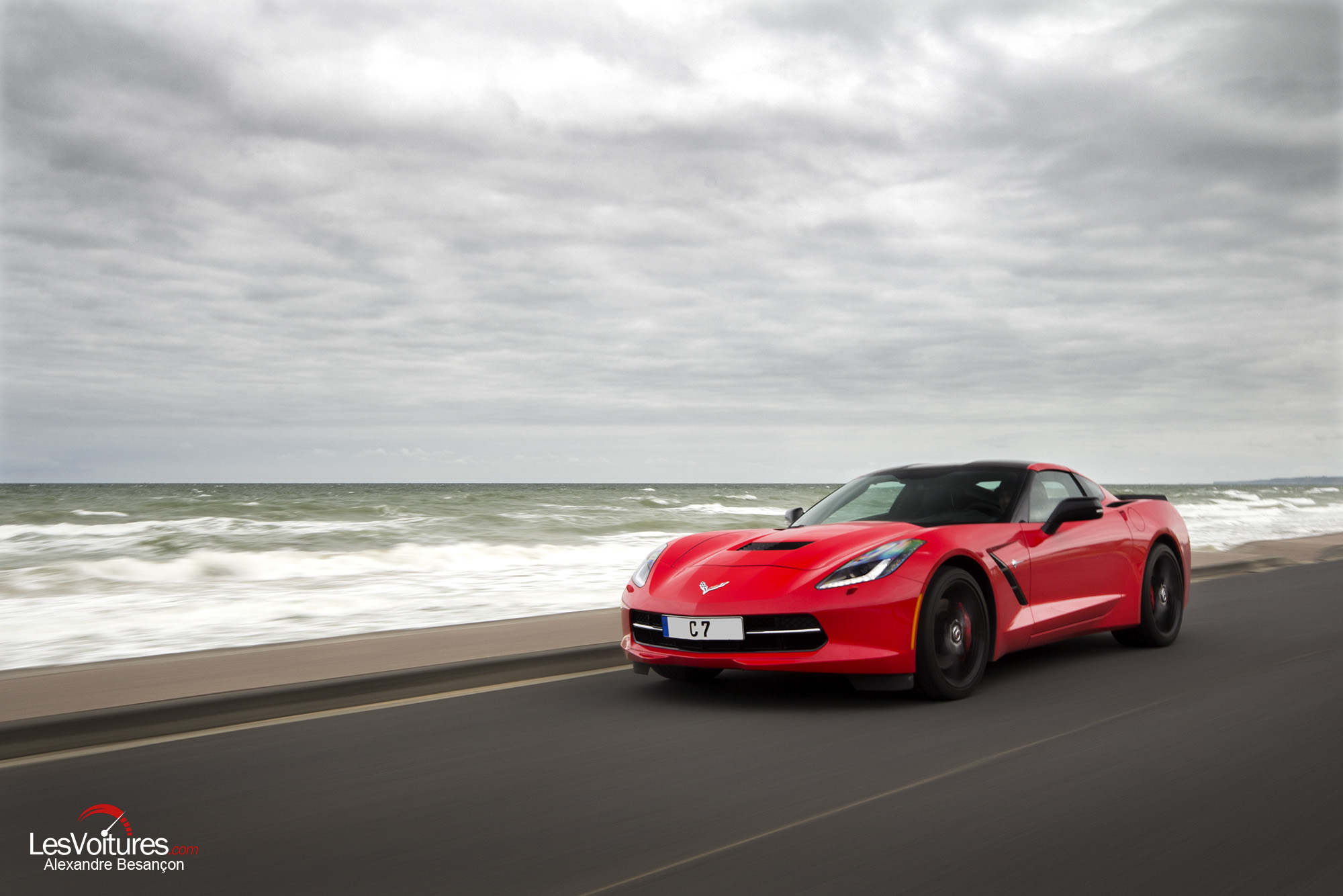 Le meilleur pour la fin… Souvent la « douloureuse » est présente dans le dernier paragraphe de nos sujets. Mais cette fois, les 69 000,00 € du tarif de la Chevrolet Corvette C7 Stingray en font un argument de poids pour ceux qui recherchent une Supercar aboutie autant sur le plan visuel que sur celui des performances. La référence du domaine est la Porsche 911 Carrera. Et si l’on veut comparer avec le premier modèle des 991, la 911 Carrera de 350 chevaux, elle affiche un prix de base de plus de 92 000,00 €. A noter que notre Corvette C7 d’essai est équipée de multiples options comme par exemple, les jantes alliage noires (500,00 €), les étriers de freins rouges (600,00 €), le becquet arrière noir (400,00 €) et l’intérieur cuir Nappa (4 500,00 €). Une nouvelle option, et pas des moindres, fera son arrivée dans quelques mois, une boîte de vitesses automatique séquentielle à 8 rapports. Elle équipera également la future Z06 Coupé annoncée à 659 chevaux.