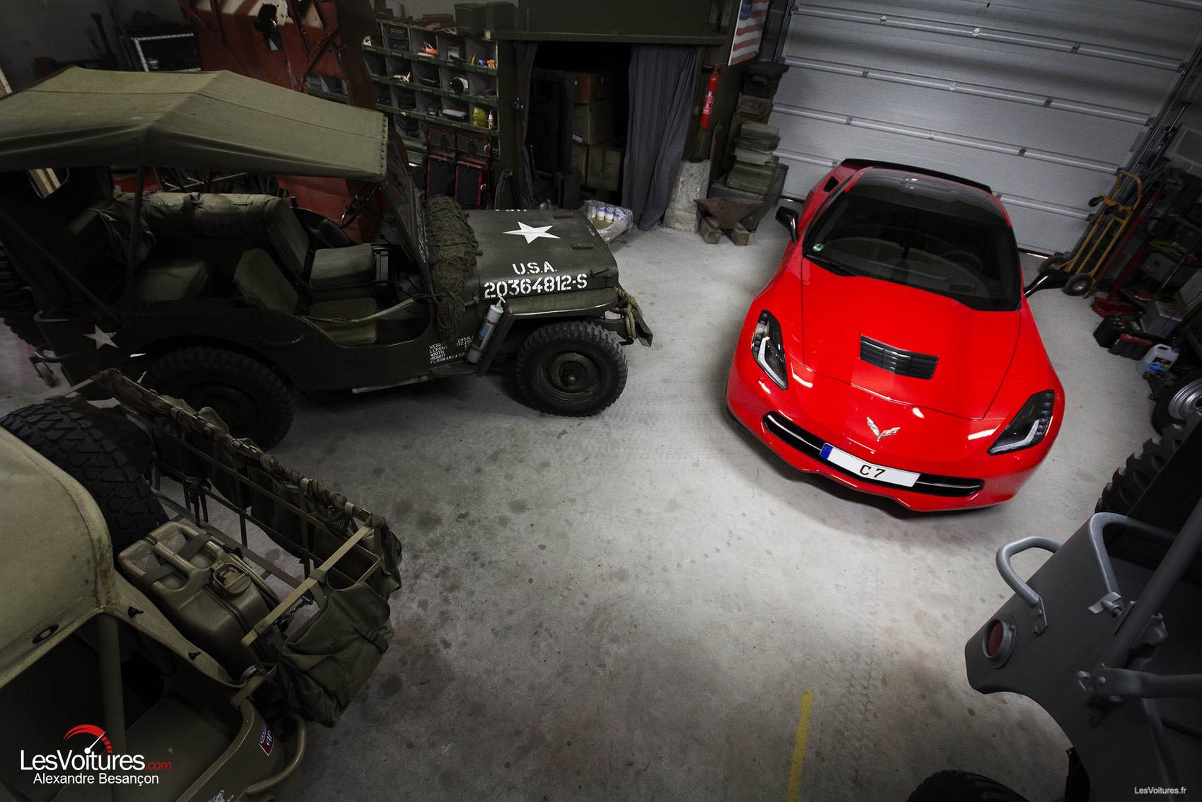 Nous ne pouvions réaliser ce reportage sans mentionner les Willys MB et les Ford GPW, les Jeep qui ont eu un rôle prépondérant en Normandie. Et c’est à Les Fosses Taillis que se situe l’un des meilleurs restaurateurs de Jeep. Le garage Normand’Jeep Military a été le théâtre de notre seconde rencontre automobile en hommage à ce 4×4 léger de reconnaissance. Le regard de la Corvette C7, matérialisé par deux feux à LED et à xénon haute intensité, présente la Supercar avec humilité aux côtés de « la voiture courage »…