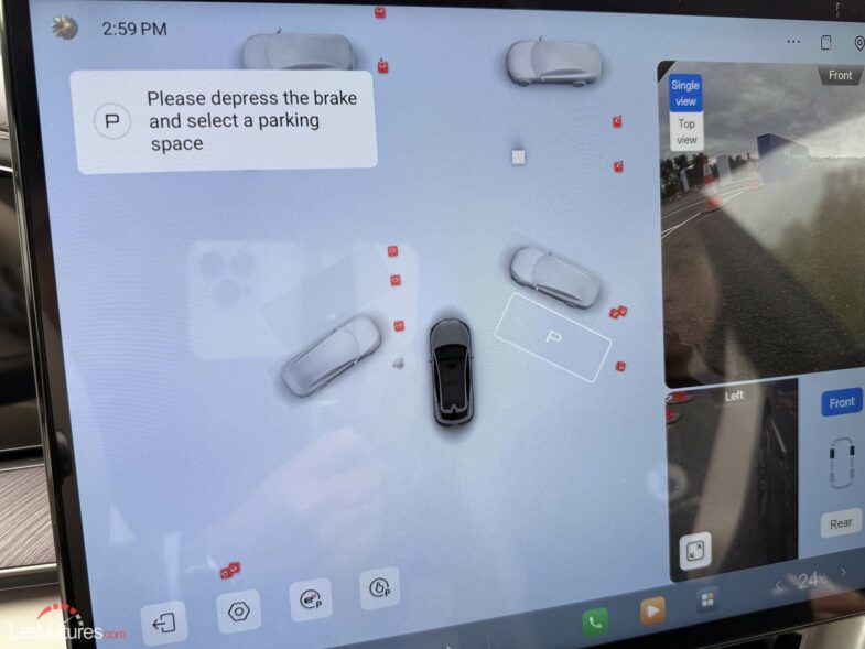 En usage réel, la pertinence est discutable : les traces de pneus laissées lors des manœuvres extrêmes interpellent, et le parking automatique s’est montré trop sensible aux faux obstacles.