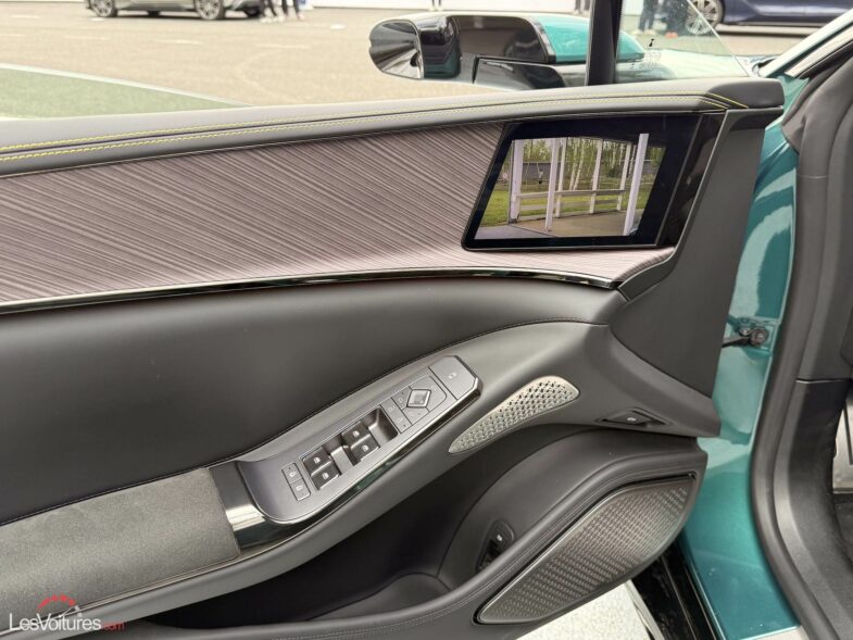 La Denza Z9GT brille, mais quelques aspérités nuisent à l’ensemble. Les portières électriques se révèlent capricieuses en usage réel : l’ouverture s’est interrompue à mi‑course à plusieurs reprises, sans obstacle apparent. Les rétroviseurs‑caméras imposent un angle de vision peu naturel côté gauche et l’option paraît de peu d’intérêt, d’autant que la taille des modules ne milite pas en leur faveur face à des miroirs classiques.