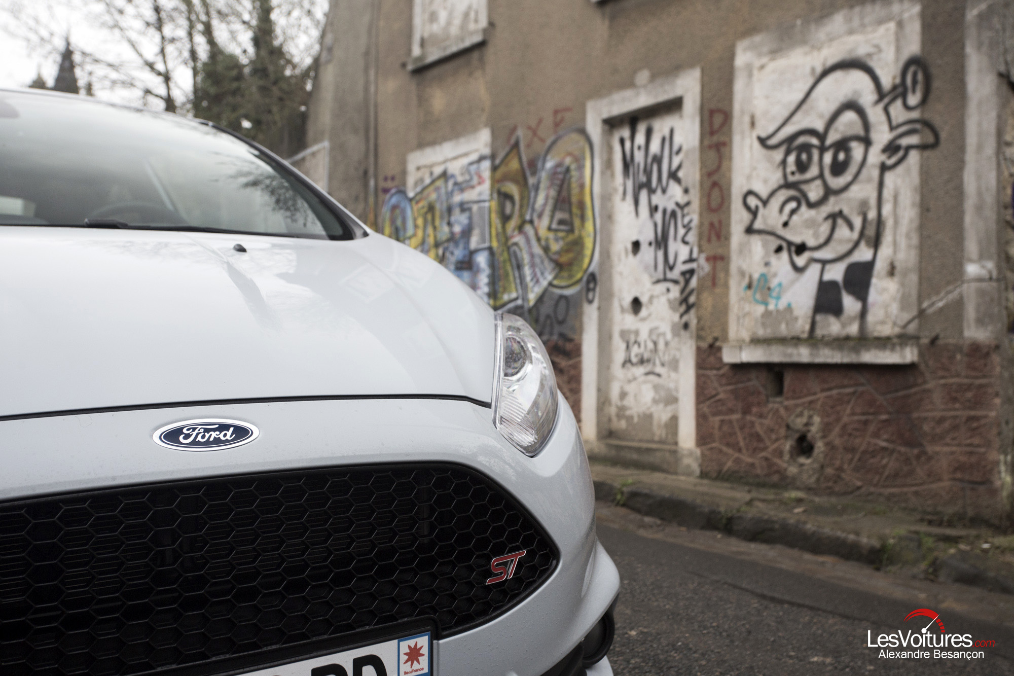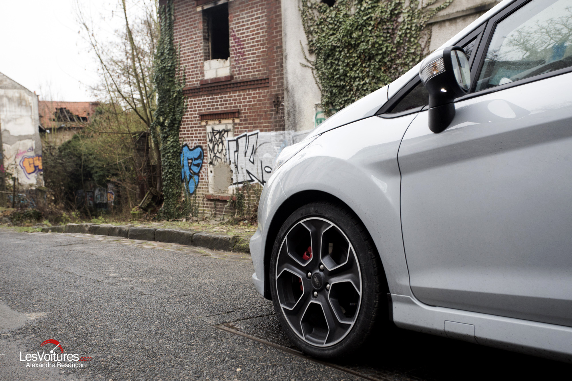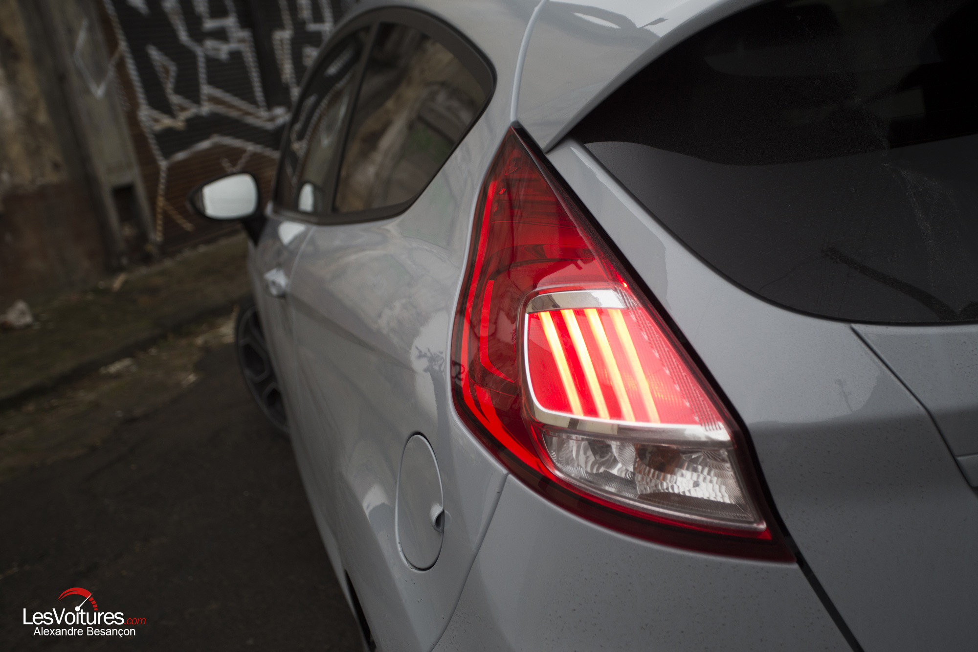 Esthétiquement, la citadine Ford n’a pas pris une ride. Son style reste dynamique et bien dans l’air du temps. La version ST ajoute une touche de sportivité bienvenue sans en faire trop. Seul le diffuseur semble avoir été rapporté et alourdit légèrement l’arrière. La teinte grise, seule disponible au catalogue, met bien en valeur les formes tout en restant sobre. Les jantes bicolores, quant à elles, trahissent l’ADN sportif de la citadine, notamment par le fait qu’elles laissent entrevoir les beaux étriers rouges.