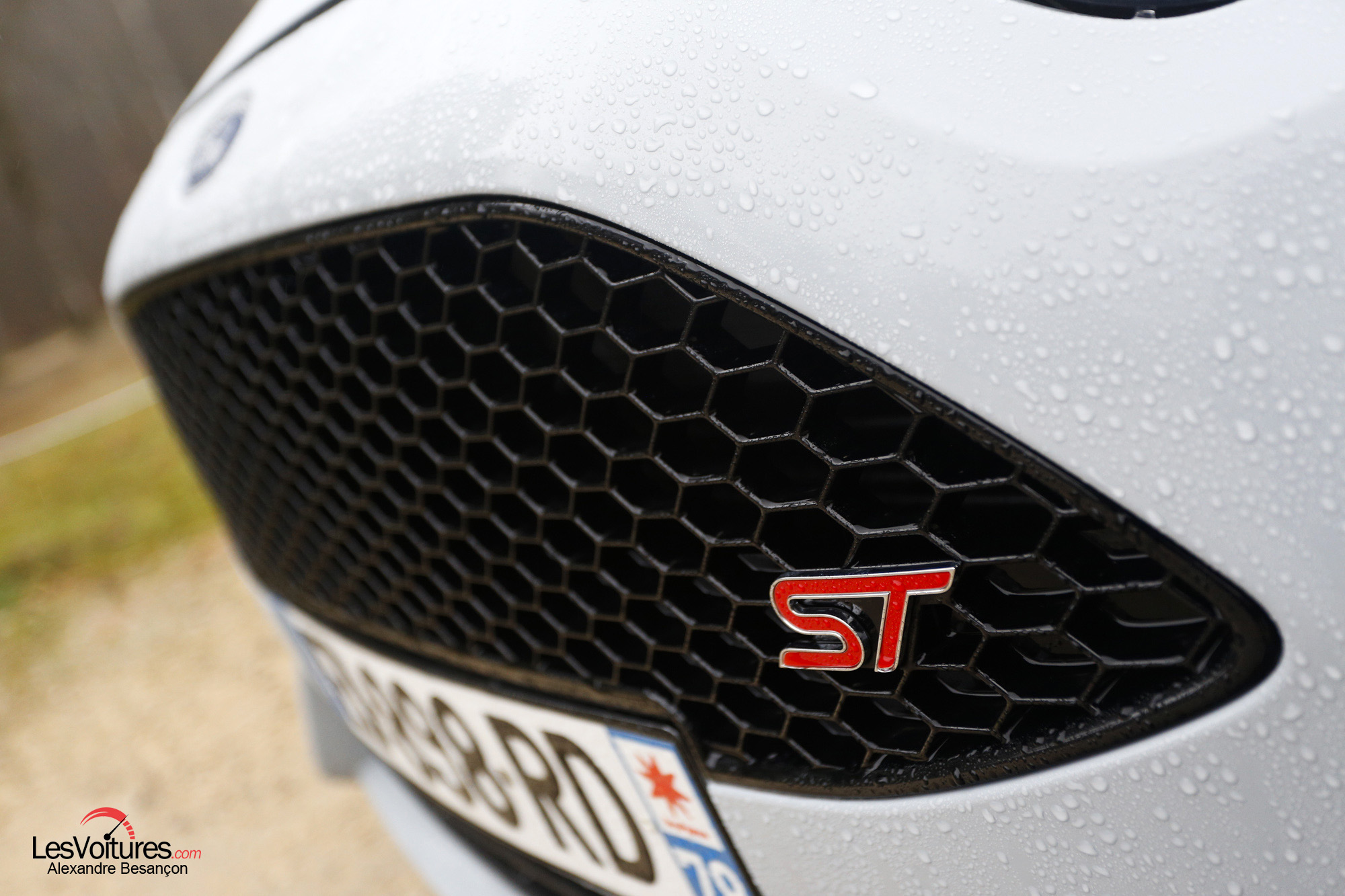 Esthétiquement, la citadine Ford n’a pas pris une ride. Son style reste dynamique et bien dans l’air du temps. La version ST ajoute une touche de sportivité bienvenue sans en faire trop. Seul le diffuseur semble avoir été rapporté et alourdit légèrement l’arrière. La teinte grise, seule disponible au catalogue, met bien en valeur les formes tout en restant sobre. Les jantes bicolores, quant à elles, trahissent l’ADN sportif de la citadine, notamment par le fait qu’elles laissent entrevoir les beaux étriers rouges.