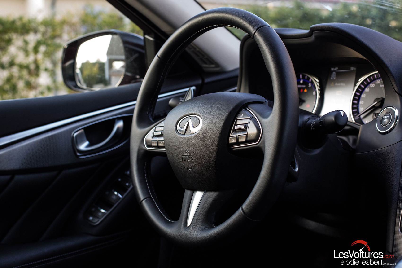 Le magnifique paysage rocailleux des hauteurs de La Ciotat sont l’occasion d’aborder les données de consommation de notre Q50 2.0t 7AT RWD, libellé exact de la berline. En cycle mixte, ce ne sont que 6,5l/100 qui sont communiqués par le constructeur, 5,2 l/100 sur autoroute et 8,8 l/100 km en ville. Il faut cependant être doux avec la pédale de droite pour respecter ces chiffres, la tentation d’activer à 100% la pression du turbo, surtout en mode ‘Sport’, étant très souvent présente. Niveau CO2, il faut compter sur 1 600,00 € de malus (151 g/km).