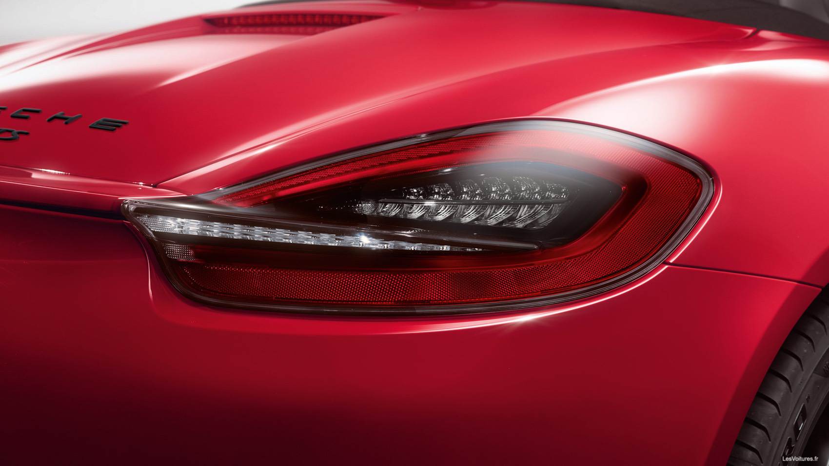 Au premier regard, la belle impressionne et fascine. Le restylage des Boxster est une vrai réussite. Ce nouveau coup de pinceau est un coup de maître. Les formes sont élancées et harmonieuses, et donnent au spectateur médusé une impression de dynamisme et de vitesse. Les gargantuesques prises d’air latérales propres aux Boxster sont au rendez-vous. La chute du capot arrière embossé se termine sur un petit aileron intégré acéré, contrastant avec les belles rondeurs du roadster.