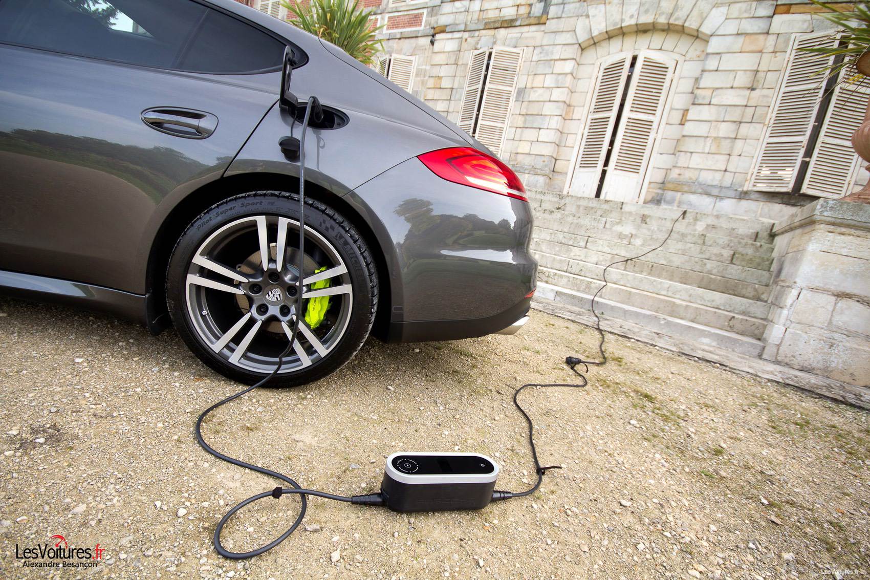Le grand moment est alors arrivé, nous allons brancher la Porsche sur une prise de courant classique. Pour cela, il suffit de connecter le chargeur universel fourni avec l’auto. L’opération est effectuée en quelques minutes. Petit conseil de la part de LesVoitures.fr : si vous êtes le futur propriétaire d’une Panamera S E-Hybrid, pensez à la recharger la nuit pour bénéficier des tarifs EDF de nuit, EDF vous doit plus que la lumière maintenant…