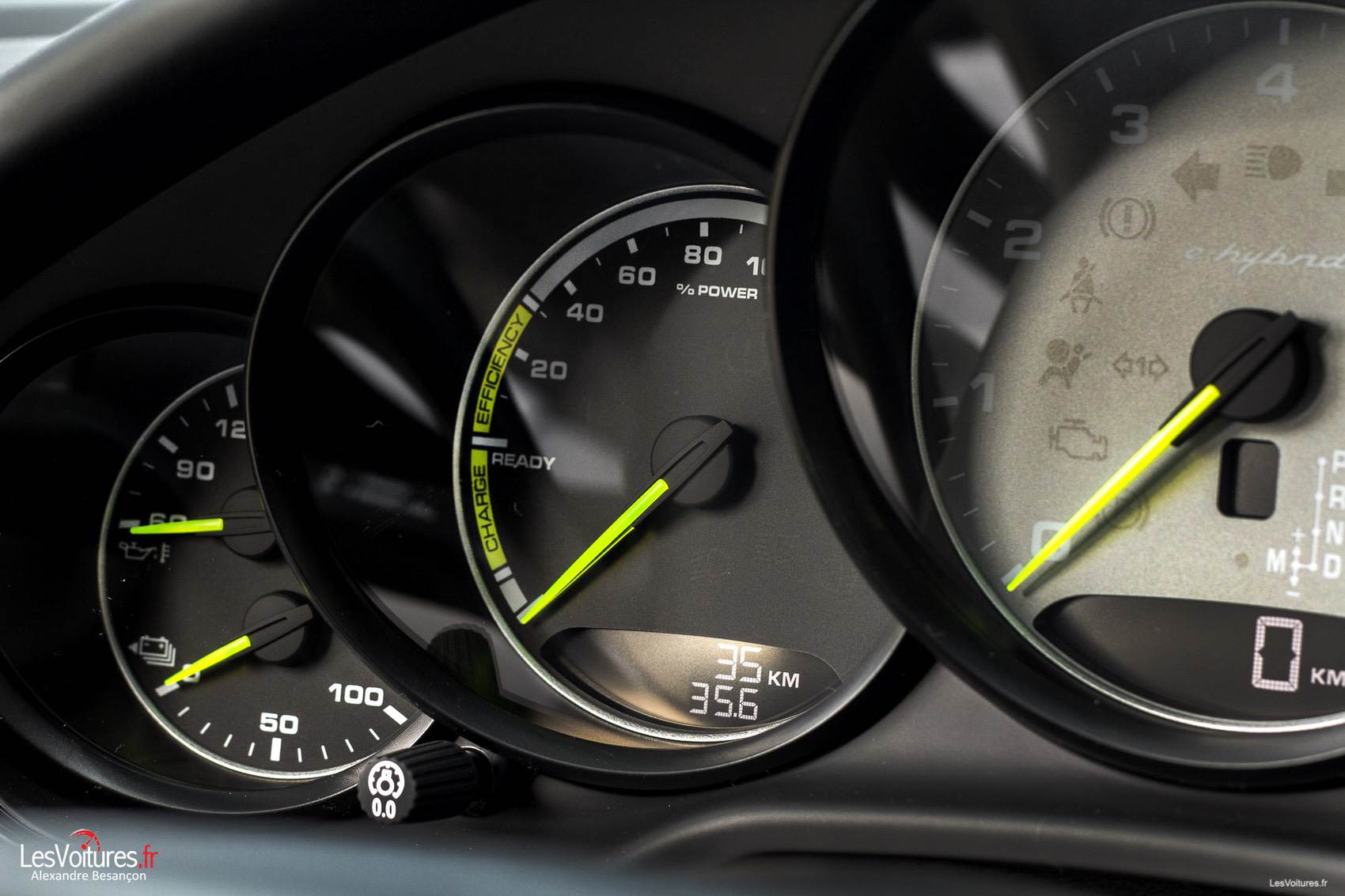 C’est à gauche du compte tours que les informations du système hybride prennent place. Simple et clair, le cadran digital va vite attirer notre attention tout au long de notre essai, ce Power-Meter sera le fil rouge de notre essai.