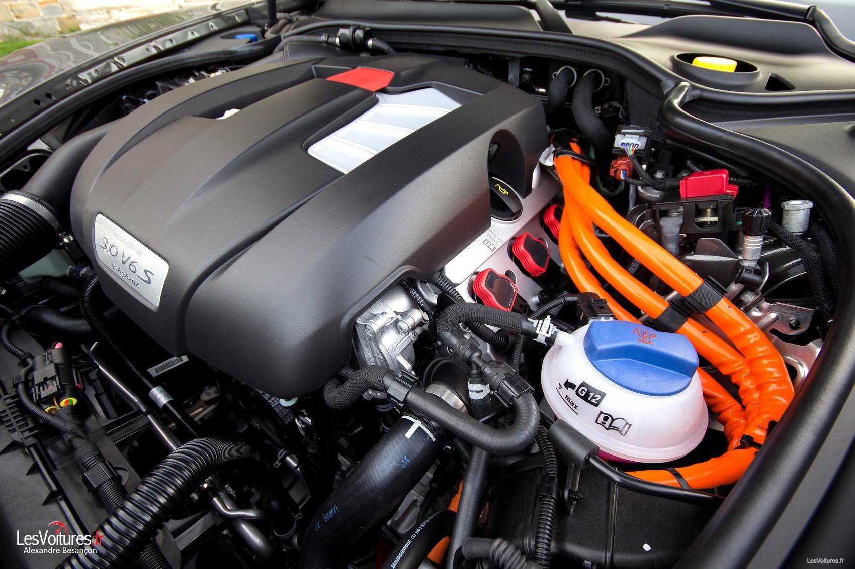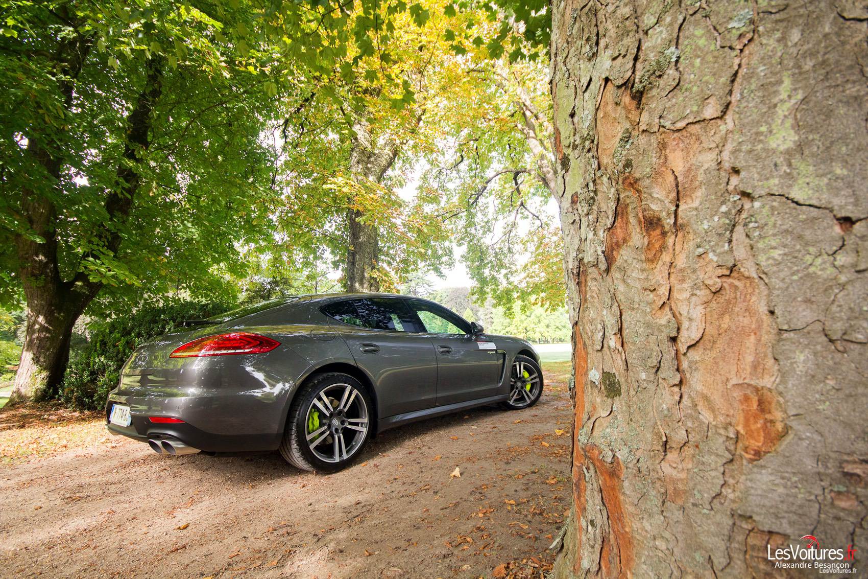 De nos jours, Porsche devait différencier la nouvelle S E-Hybrid des autres membres de la famille Panamera. C’est chose faite, comme sur la 918 Spyder, avec des étriers de couleur vert fluo, voir acide, et un sigle « e-hybrid ». Ce dernier apparaît telle une signature manuscrite, comme pour rendre hommage aux ingénieurs qui ont développé l’auto. L’accès à la prise de recharge « plug-in » est quant à elle située sur le flanc gauche de l’auto, à l’opposé de la « vieille » trappe à essence.