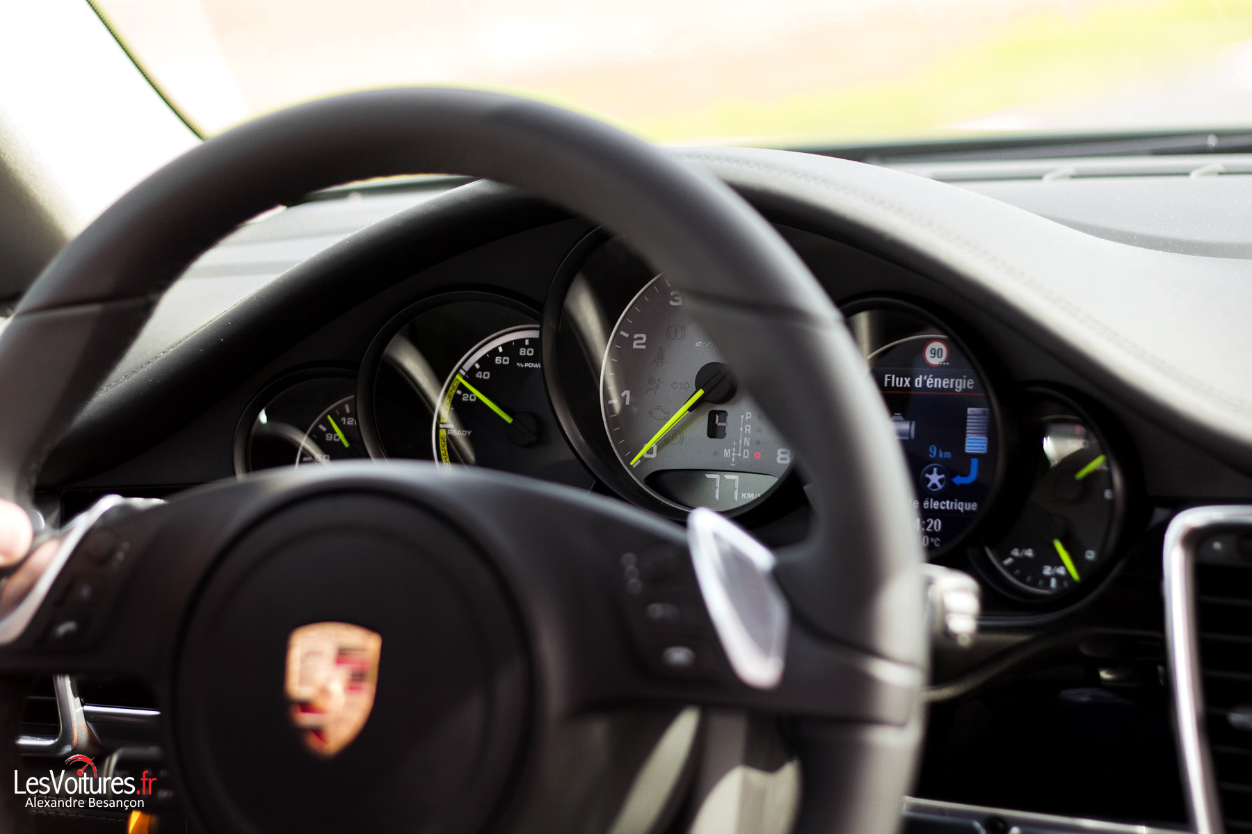 Totalement séduits par la Panamera S E-Hybrid, nous rentrons au Centre Porsche Arpajon (Groupe Ravé), que nous remercions d’avoir mis à notre disposition leur Panamera S E-Hybrid de lancement. Rouler en Porsche sans passer par les puits, comme le dirait si bien Jacques Villeneuve, c’est donc une réalité. La Panamera S E-Hybrid de notre essai s’affiche à 112 309,00 € TTC (hors options) et à 132 000,98 € TTC avec options. Les 4000 € de bonus écologique pour lesquels la voiture est éligible vous permettront de réduire la note sans compter les nombreux pleins que vous ne ferez plus.