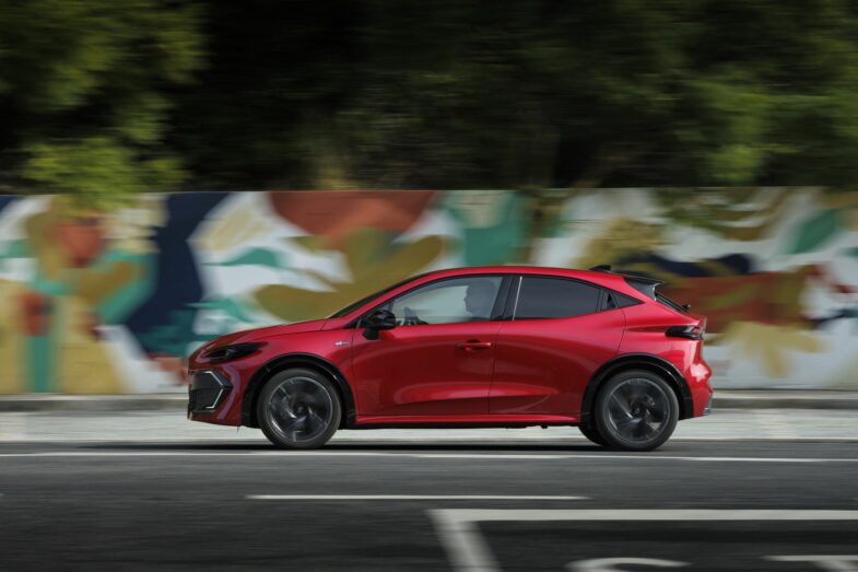 Si la Clio 6 peut apparaître, en photos, trop travaillée en termes de forme et de structures que nous qualifierons de multiples, en vrai, elle est clairement très attractive et dégage une forte identité, une homogénéité visuelle à la fois surprenante. La Clio 6 semble être prête à bondir sur la route. La teinte « rouge Absolu » (option : 850 €), et les jantes de 18 pouces, de série en finition « Esprit Alpine », ajoutent une sacrée dose de plaisir visuel. N’est-ce pas là l’essentiel, à savoir surprendre et donner envie de prendre le volant d’une telle voiture ? Mais avant notre essai routier de la Renault Clio 6 full hybrid E-Tech 160 « Esprit Alpine », découvrons son habitacle.