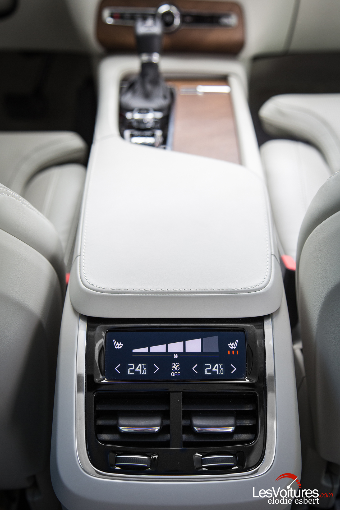 Une fois la porte côté conducteur ouverte, nous sommes absorbés par une ambiance aussi douce que feutrée. Elle mêle des matériaux nobles tels que le bois de noyer scandinave et le cuir Nappa perforé beige. Sur le plan de l’habillage intérieur, Volvo fait très fort et c’est sans nul doute que nous pouvons positionner le XC90, merveilleux salon roulant, comme le meilleur d’un segment qui inclut les Audi Q7, et Mercedes GLE et autres Land Rover Range Rover. L’instrumentation 100% numérique est superbe et l’écran central tactile de 9″ offre ce qui se fait de mieux en matière d’ergonomie. Les nombreux paramètres et fonctionnalités du très moderne SUV, bourré de technologies et d’aides à la conduite, sont accessibles très facilement grâce au principe des menus coulissants exactement comme sur une tablette.
