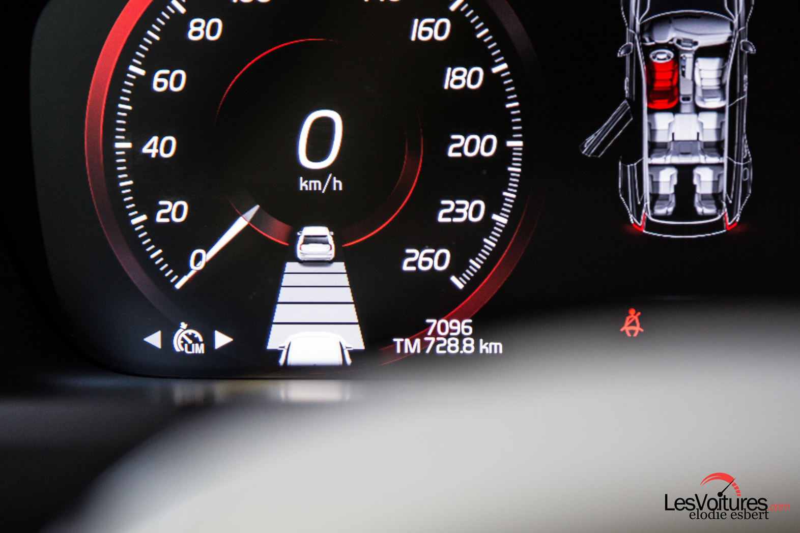 Seules les épingles très serrés sont délicates à aborder, le SUV premium ne disposant pas de roues arrière directrices. Malgré quelques légers mouvements de caisse en courbe, le comportement du XC90 est exemplaire. Le sentiment de sécurité ressenti est extrêmement présent. Transition parfaite pour évoquer les technologies qu’embarque le SUV. Rappelons d’abord que l’objectif de Volvo à l’horizon 2020 est des plus ambitieux : plus aucun mort ou blessé grave dans une Volvo. Il nous faudrait un autre article complet pour détailler le savoir-faire et les progrès insufflés par Volvo en la matière. Le système IntelliSafe Assist (de série en finition Inscription Luxe), nous a complètement séduit. Il inclut les régulateurs adaptatifs de vitesse et de distance, l’assistance embouteillage, l’alerte de sécurité et l’alerte active de franchissement de ligne. Pour faire simple, l’intelligence de ces dispositifs est si bien paramétrée qu’elle permettrait presque de parcourir des dizaines de kilomètres sur autoroute sans tenir le volant ! Le XC90 voit et réagit aux lignes avec douceur et s’inscrit prudemment dans les virages. Il détecte tous les obstacles, freine et ralentit comme un grand qu’il est à l’approche des voitures qui le précède.