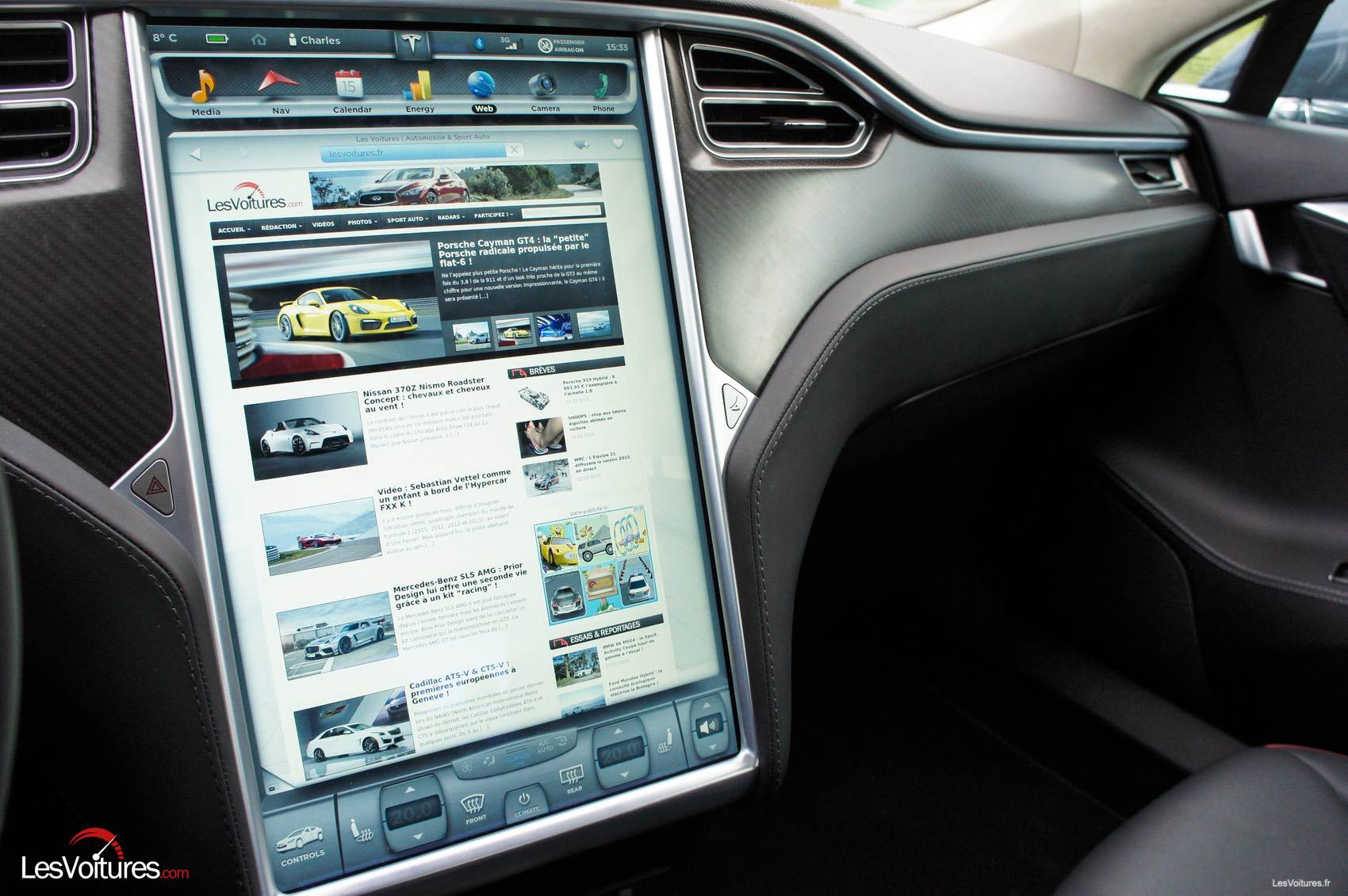 En termes de confort, les sensations de conduite exemplaires que procure la Model S sont savourées dans une ambiance sonore sans aucun bruit, un vrai délice. Lors de notre essai, nous avons volontairement traversé des villes, pris l’autoroute et des routes secondaires tout en poussant la Model S. Résultat l’autonomie est passée à environ 380 km, ce qui est déjà plus que convenable.