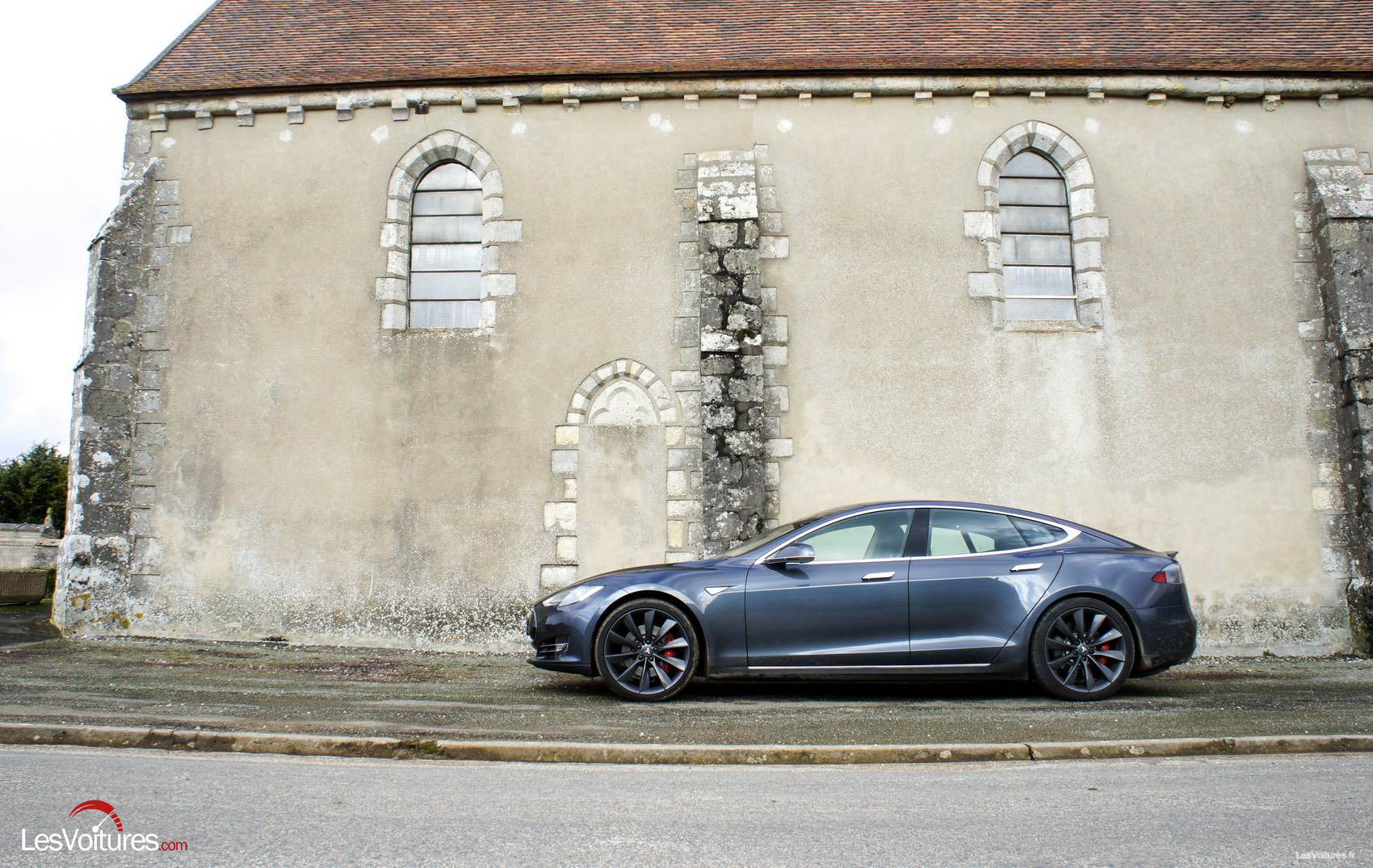Esthétiquement, et malgré un gabarit des plus imposants (L : 4 98 m, l : 2 19 m, H : 1, 44 m), pour un poids de 2 100 kilos, soit presque les dimensions d’une Audi A7, la Model S a tout pour plaire. Elancée et sculpturale à la fois, cette version la plus haut de gamme de l’offre Tesla profite d’éléments distinctifs très sportifs : becquet arrière en fibre de carbone, étriers de freins rouges (Performance Plus Package). Quant aux jantes Turbine de 21″ (option : 4 600 €), elles portent bien leur nom, propulsant visuellement l’auto dans un univers aérien et écologique qui colle si bien à nos photos.