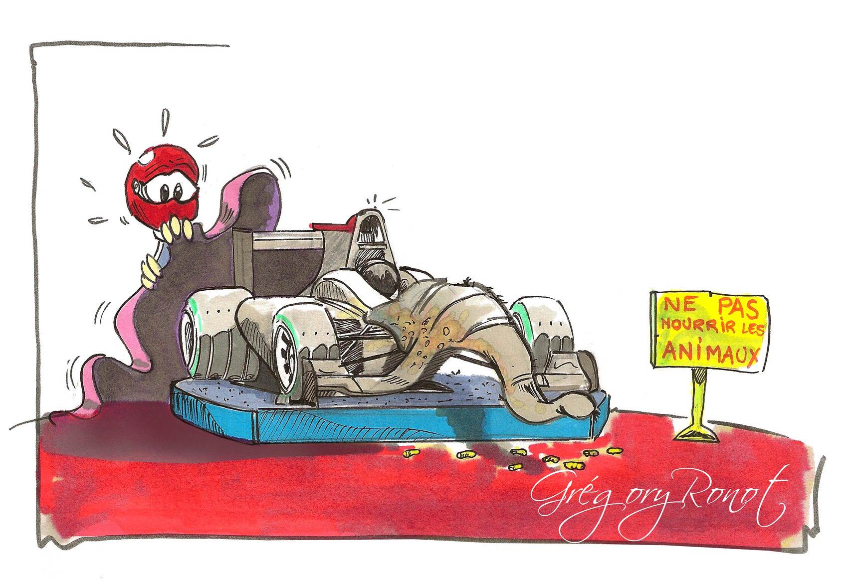 Le « Grand Cirque » de la Formule 1 n’a jamais aussi bien porté son nom. Nous savions déjà que la saison 2014 allait marquer une révolution dans le championnat roi du Sport Auto, avec l’arrivée des Power Units (V6 Turbo hybrides), mais les looks des monoplaces 2014 nous laissent perplexes. Ils ont d’ailleurs inspiré l’illustrateur Grégory Ronot !