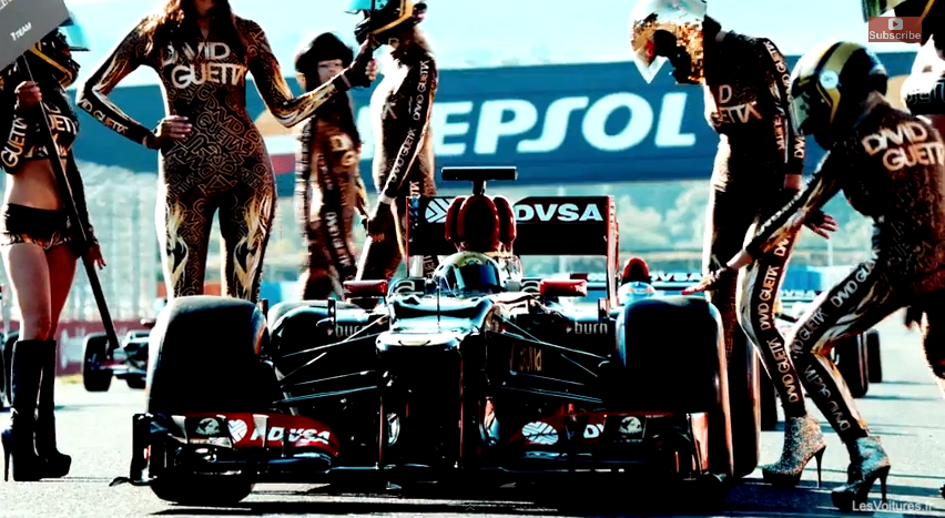 La Formule 1 n’avait pas besoin de cela ! Dans son dernier clip « Dangerous » (album « Listen »), David Guetta joue le rôle d’un pilote de Formule 1. Il prend ainsi le baquet de la Lotus E22 de Pastor Maldonado pour affronter un adversaire qui est au volant d’une AGS, allez comprendre pourquoi ? Pire, les mécanos sont remplacés par des femmes habillées de combinaisons très courtes et moulantes, sans oublier leurs talons hauts. En espérant que le cachet touché par Lotus F1 Team ait été important. Même si paradoxalement, on voit à peine le nom Lotus dans la vidéo par rapport à d’autres placements produits. Sur ce coup, le roi des deejays ne fait pas honneur à la discipline reine du Sport Auto tout comme le réalisateur du clip, Jonas Åkerlund. On est trés très loin du film Rush dont on sent clairement l’inspiration. Seule « consolation « pour Lotus, le podium de Romain Grosjean… A votre tour d’en juger en cliquant sur Play ci-dessous.
