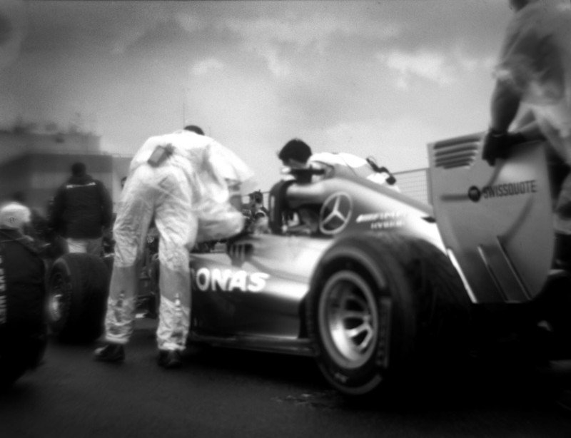 Photographe professionnel depuis 10 ans, ce n’est que depuis 2013 qu’il « shoote » des monoplaces avec un Gravlex 4×5. Cette machine d’un autre temps n’est capable de réaliser que 20 photos par session et ne parlons pas des réglages manuels qu’elle oblige.