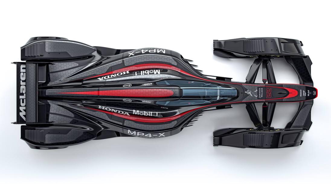 Début 2015, la Scuderia Ferrari s’était prêtée au jeu du concept de F1 du futur (à revoir ici). Mais McLaren va beaucoup plus loin même si le MP4-X Concept est, comme la vision Ferrari, une réalisation virtuelle purement 3D. Le MP4-X Concept s’inspire de la Red Bull X2014 mais avec beaucoup plus de détails innovants voire réalisables, pour certains, d’ici quelques dizaines saisons. Au premier regard, on peut aussi clairement voir beaucoup du design des LM P1-H du FIA WEC à travers ce concept.