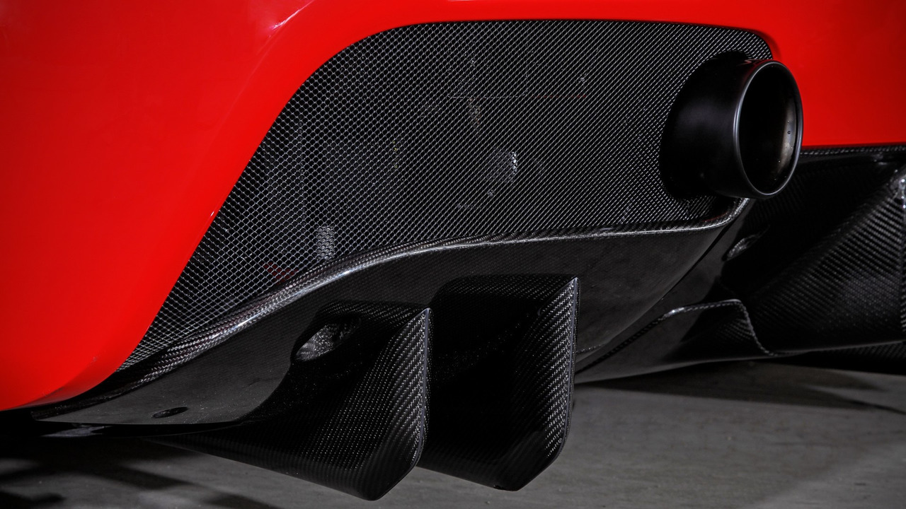 Sur le plan esthétique, il faut avouer que les allemands ont réalisé un superbe travail sans dénaturer le style de la Ferrari. L’aérodynamique a été habilement retravaillé a tous les niveaux de la Ferrari avec des nouveaux éléments en carbone dont un fantastique aileron arrière.