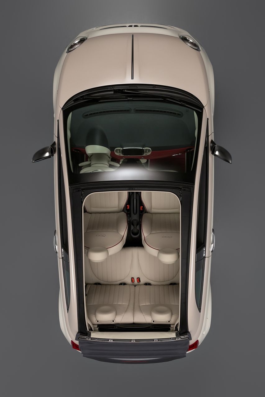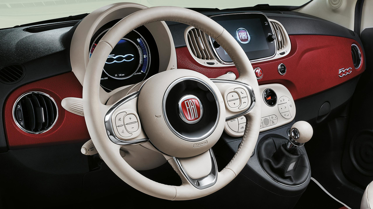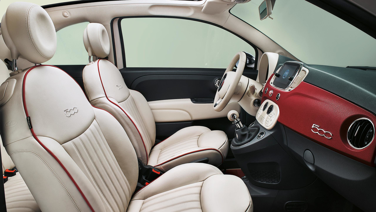 A l’intérieur de cette 500 anniversaire, le traitement des tons et le même que pour sa « robe » avec du bordeaux et de l’ivoire présents sur la sellerie cuir et les contre-portes. Point important, cette série exclusive en tous termes est basée sur la finition haut de gamme Club. Cette dernière inclut, entre autres, un écran tactile 7″, l’Apple CarPlay et l’Androïd Auto.