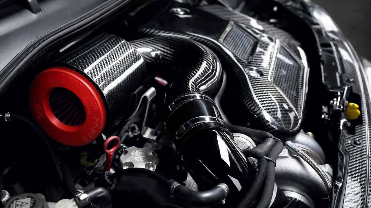 Sur le plan de son design, son kit carrosserie, baptisé Ares, fait la part belle à la fibre de carbone. Les boucliers avant et arrière, le capot, les ailes et le rétroviseurs en sont composés. Sans oublier les jupes latérales conçues pour un maximum d’effet aérodynamique. Du carbone, on en retrouve aussi sous le capot du ce petit bolide de folie.