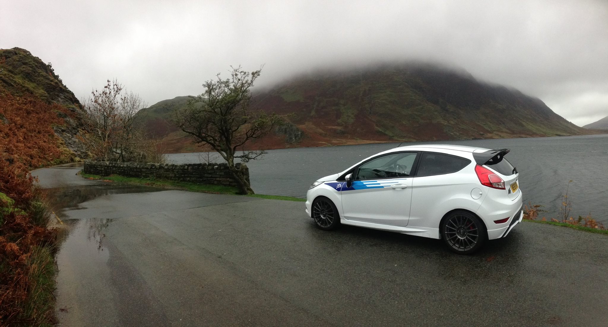 Au programme des évolutions, on trouve aussi un différentiel à glissement limité Quaife, des jantes de 17″ OZ, des amortisseurs Eibach Pro et des freins Alcon dont les disques sont de 332 mm. Un système d’injection d’air frais Pipercross est aussi présent ainsi qu’un échappement Chris Tulett Exhaust. La Fiesta a également été abaissée de 11 mm et se voit doter d’un becquet arrière.
