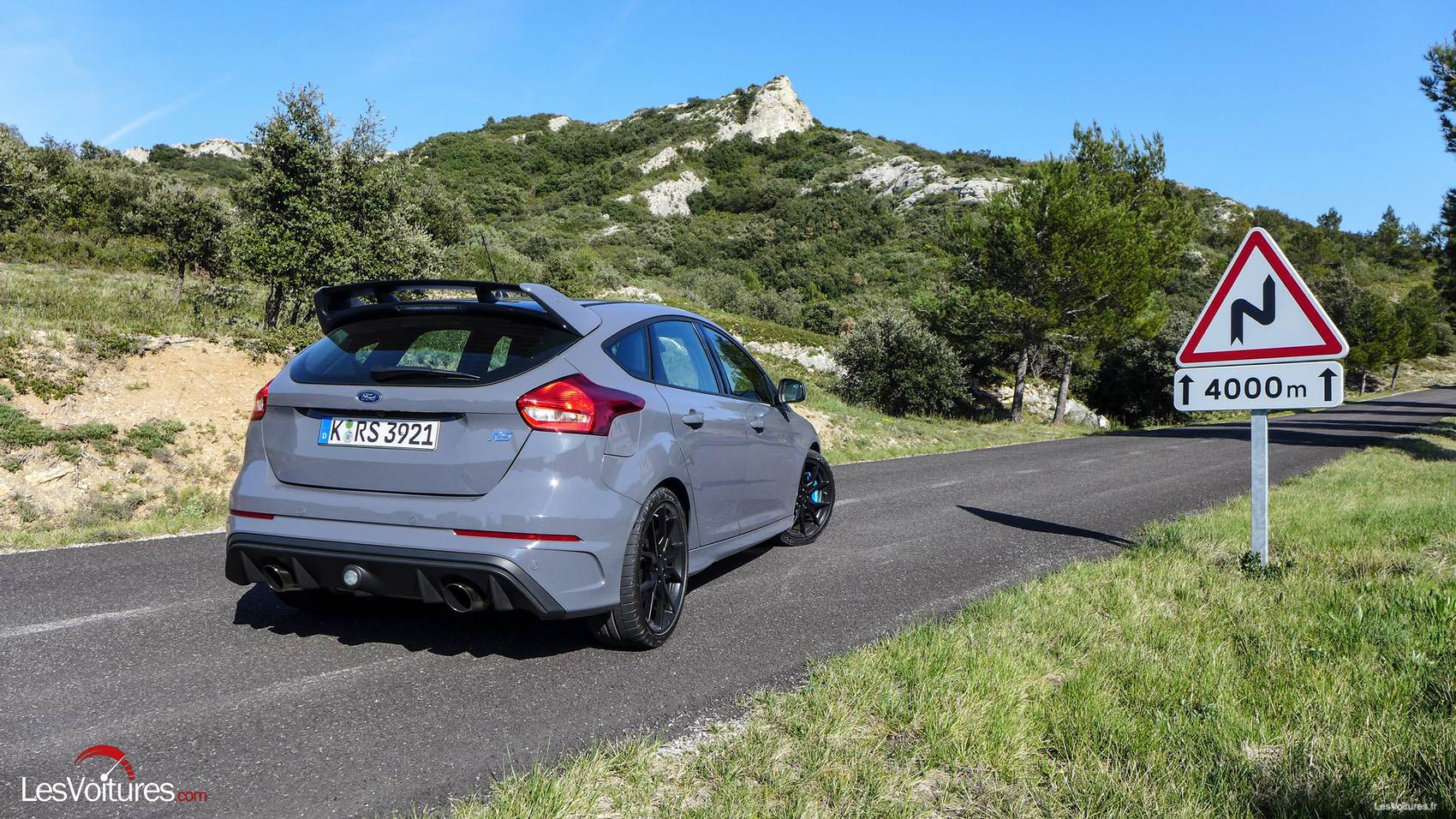 Contact ! En moins de temps qu’il ne le faut pour l’écrire, la Focus RS nous fait oublier le précédent paragraphe sur les manques de son habitacle. Les premières sonorités qui s’échappent du 2.3 l EcoBoost nous font espérer le meilleur. La prise en main de l’auto se fait rapidement et avec une facilité déconcertante tant la précision de la direction et la stabilité de la berline se font ressentir à chaque virage. Sur ces deux points, Ford Performance a parfaitement calibré et conçu spécifiquement l’assistance électronique et un soubassement capable de supporter le système AWD à vecteur dynamique de couple.
