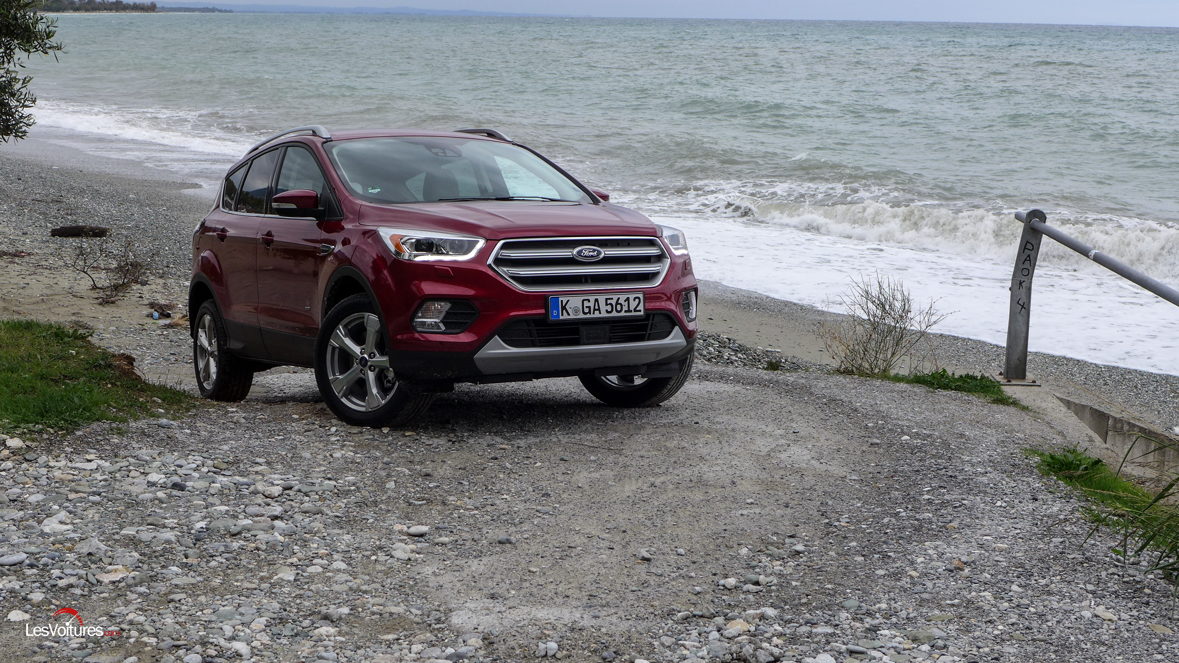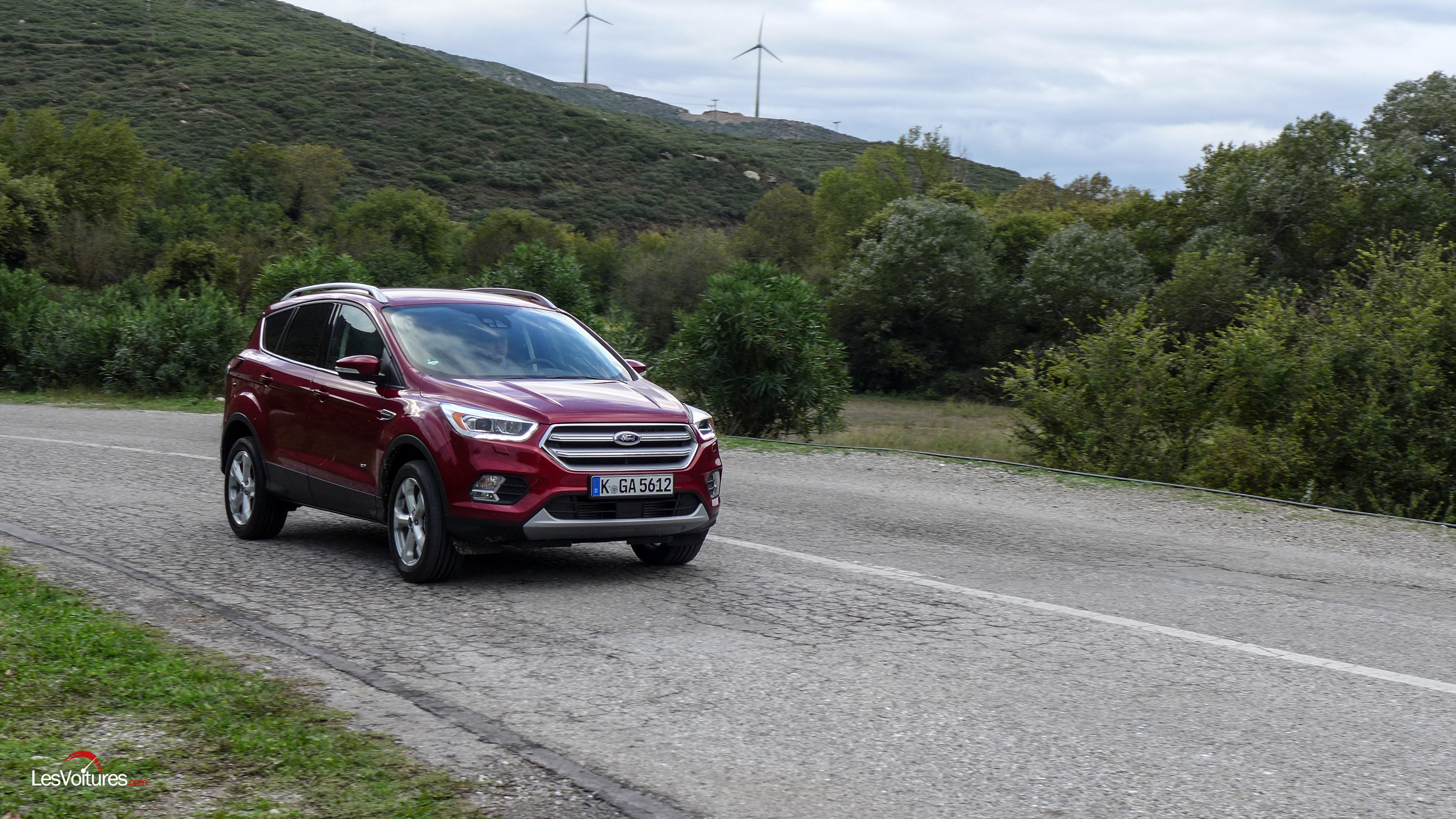 Sur les routes grecques, notre SUV a souffert du poids de son âge au sens propre et figuré. Ses 1 591 kilos sont un handicap lié à la plateforme originelle du Kuga. Mais l’américain a de la réserve notamment au niveau de son comportement sans faille. Sur les longues autoroutes que nous avons empruntées, le confort a été au rendez-vous. Il ne faudra néanmoins pas trop demander au Kuga lors de dépassements. Ses reprises sont trop discrètes à cause, bien sûr et encore une fois, de son poids trop élevé.