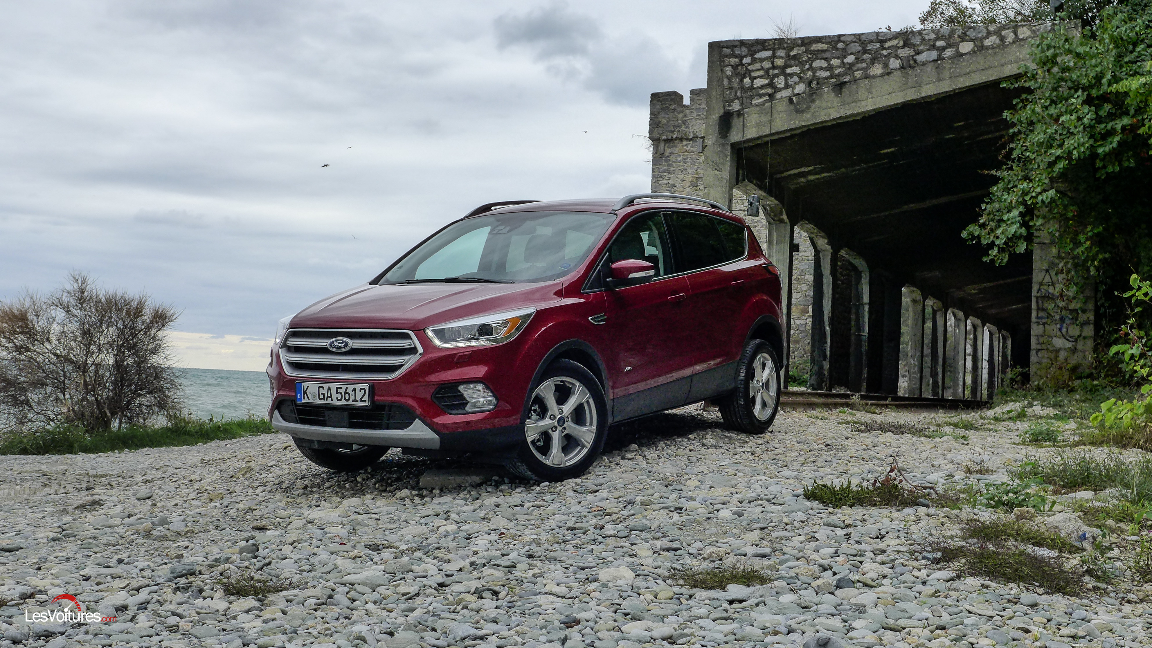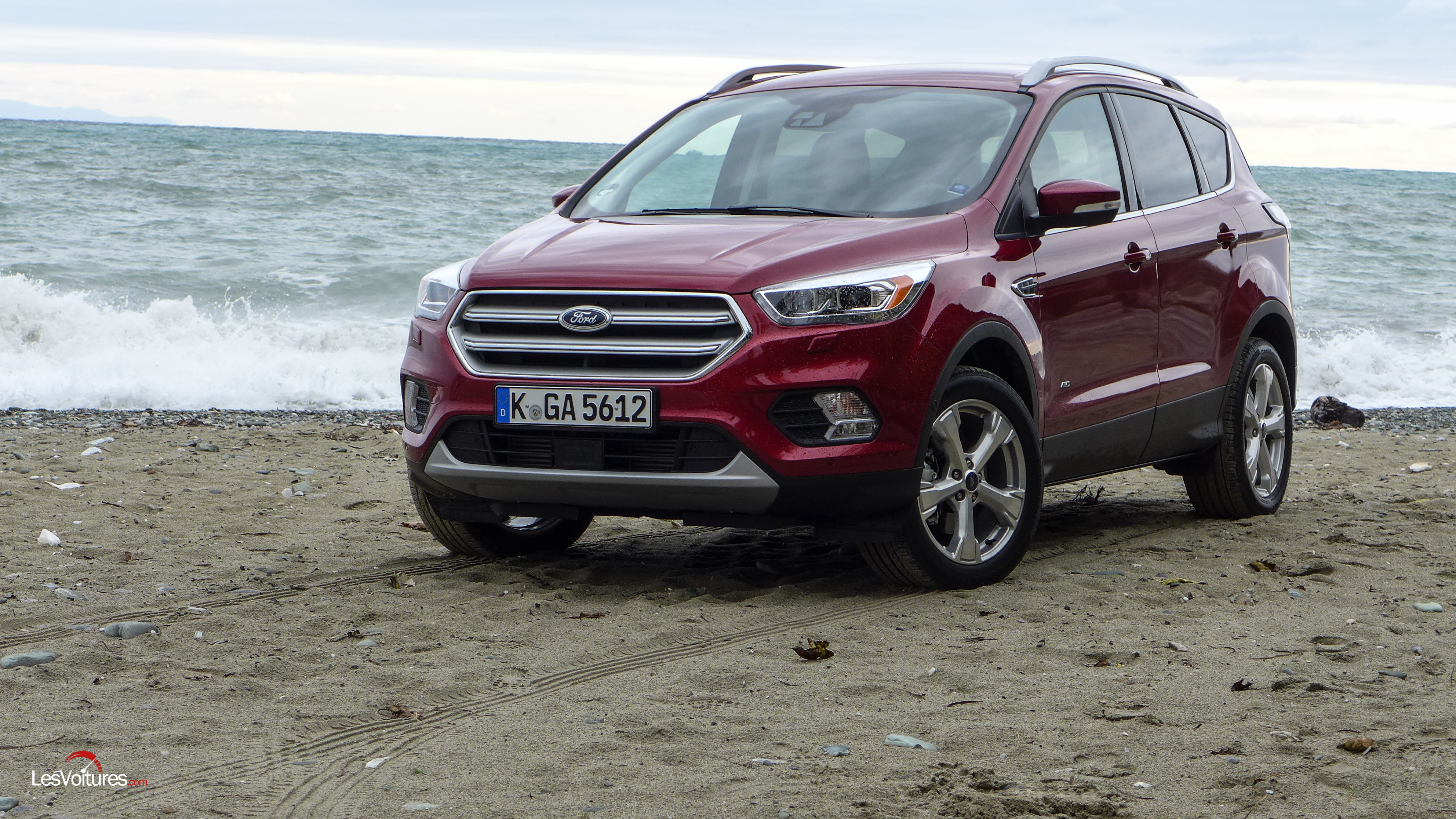 Ford annonce un 0 à 100 km/h réalisé en 12,7 s. En dehors des tristes autoroutes grecques bordées d’usines et de magasins et autres sites à l’abandon, l’agilité du Kuga n’est elle pas en crise. La commande de boîte de vitesses bien en mains, il suffit de jouer sur les rapports pour mouvoir le Kuga avec facilité grâce aux 370 Nm de couple disponibles tôt (entre 2 000 et 2 500 tr/min) et son châssis bluffant. Même si les débattements du levier de la boîte sont trop grands, leurs précisions offrent un bon agrément de conduite (boîte Powershift disponible en option). Quant à la direction, elle est assez précise, sans remonter un maximum d’informations, et le freinage est une nouvelle preuve du sérieux développé par le Kuga.