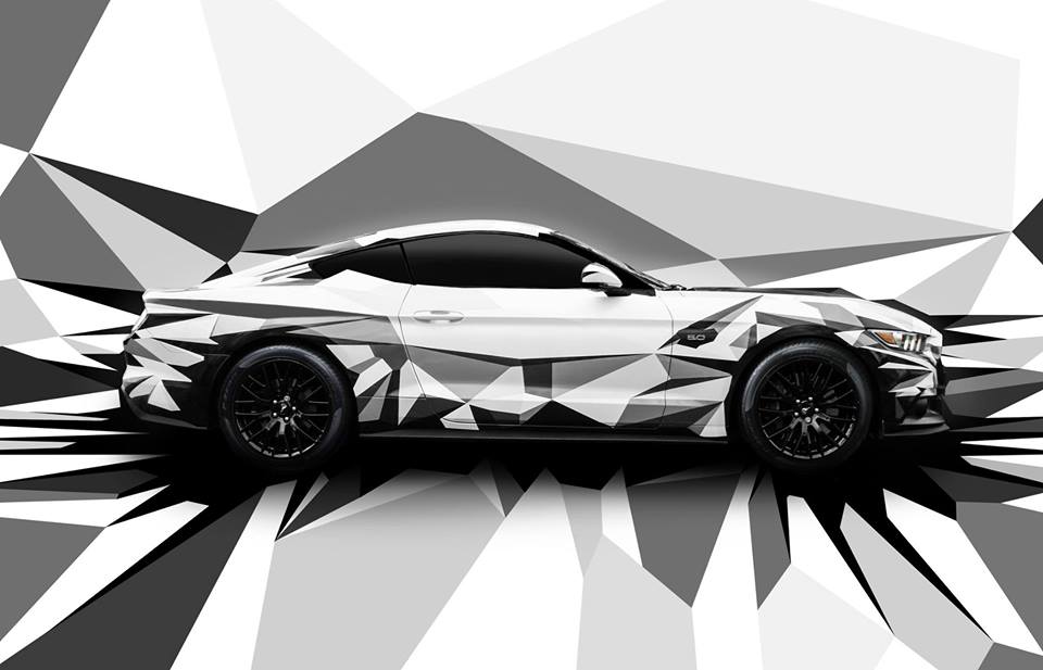 « La Ford Mustang a été dévoilée aux USA avant d’être présentée lors du Mondial de l’Automobile de Paris 2014. Le public la connaissait déjà bien. Il fallait donc créer une certaine nouveauté esthétique pour que cette 6ème génération de la Mustang puisse créer la surprise. Mon objectif a donc été de faire oublier les volumes de l’auto et son design. J’ai dû créer un design fort pour que les passionnés de l’auto puissent découvrir un nouveau modèle, un nouveau concept. Je me suis donc inspiré de la technique de camouflage disruptif, utilisée lors de la Première mondiale sur les bateaux. Egalement connue sous le nom de Dazzle, un terme qui signifie embrouiller en anglais, cette méthode de camouflage a pour avantage de casser les formes. Ainsi j’ai déstructuré les lignes de la Mustang pour lui faire paradoxalement ressortir sa puissance visuelle. »