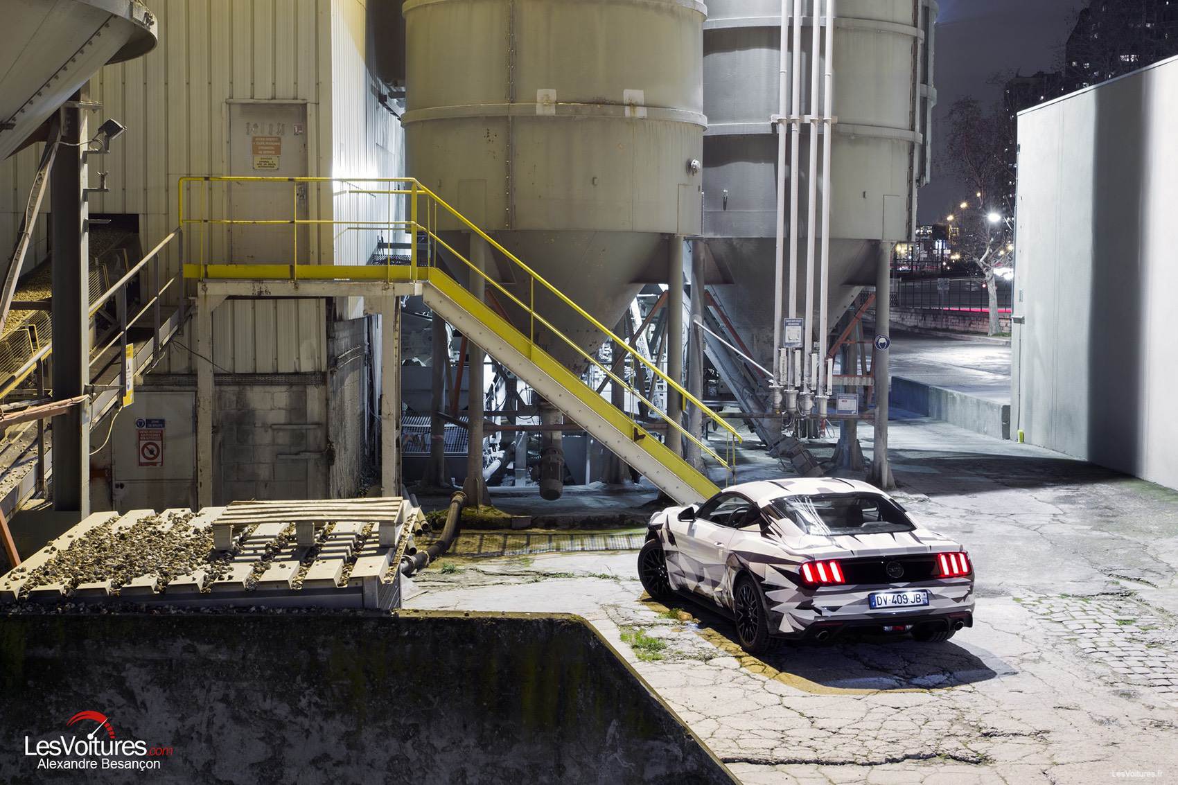 Quelques miles marins plus loin, c’est un site industriel qui nous a permis de faire ressortir les triangles de la Mustang, et sa signature visuelle, aux côtés de silos.