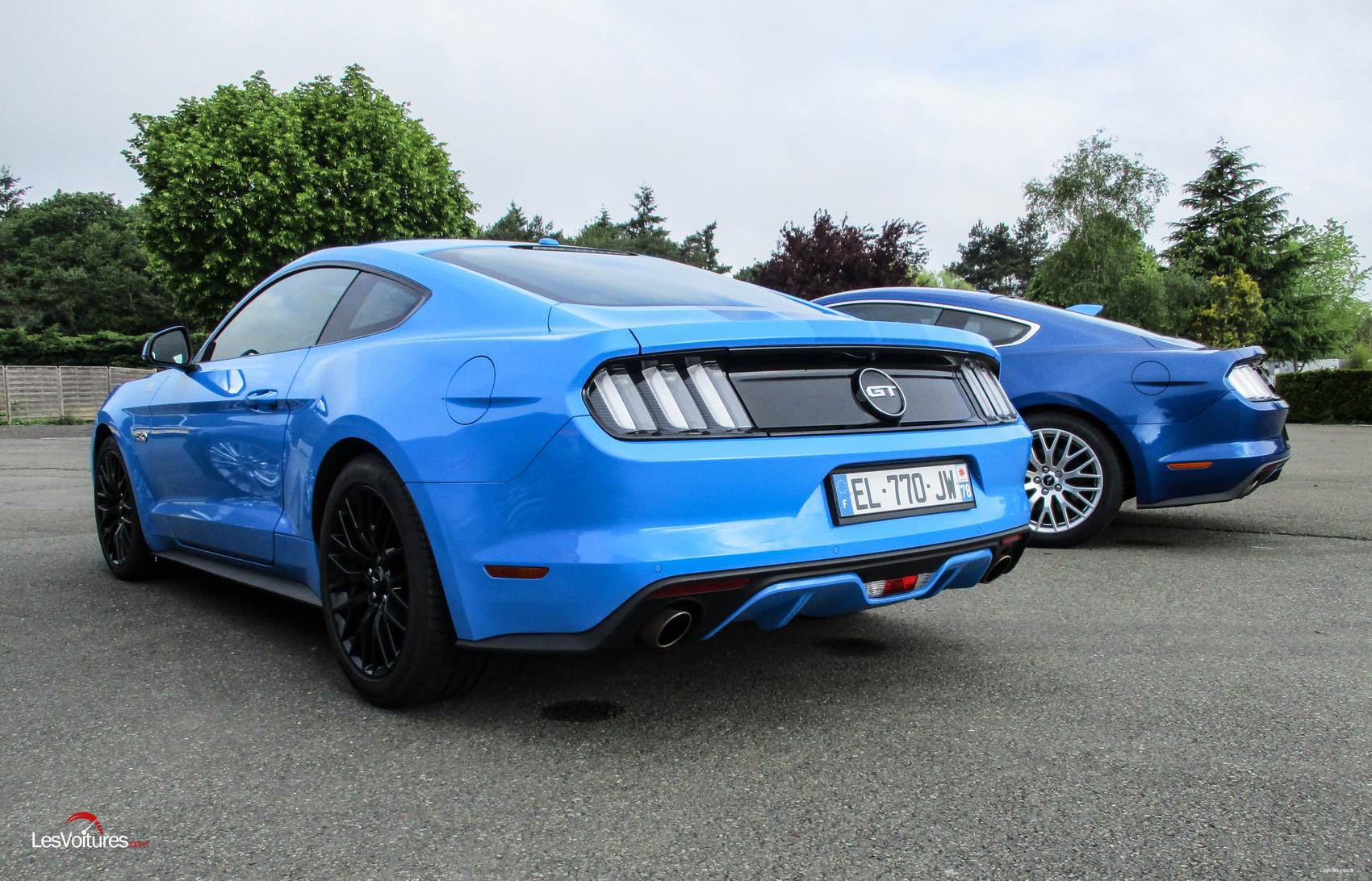 La Focus nous a un peu laissés sur notre faim. Passant après le Fiesta ST 200, déchaîné, la Focus RS passe pour presque sage alors qu’en définitive, elle marche beaucoup mieux mais, oui, la petite nous a plu et on en redemande ! Passons donc sur cette compacte performante pour sauter dans le siège de la Mustang dont le bleu est magnifique. Calé dans le siège, boîte mécanique d’homme (il ne s’agit pas d’un joystick ultra fin mais bien d’un changement de vitesses qui demande de la force et de la prévision) et c’est parti. Achetez une Mustang ne serait-ce que pour le son. A ce propos, une petite parenthèse : on parle d’un bruit de diesel mais d’un son de V8 essence. V8 donc, miam, ça gueule dans le bon sens du terme, à des années lumière de la sonorité d’un V8 italien beaucoup plus aigu. Beaucoup plus gras, lourd, des borborygmes à vous faire frémir les poils, ça c’est de la caisse!