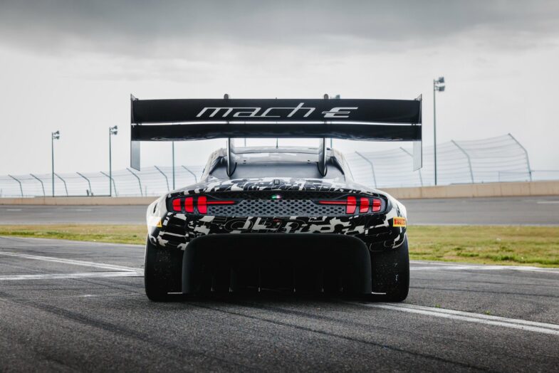 Au-delà de ces aspects techniques, le Ford Super Mustang Mach-E adopte une calandre réduite et une carrosserie redessinée. Son arrière sculpté, aux courbes musclées, renforce son style agressif. Par ailleurs, ce modèle semble nettement plus court que la version commerciale, mais Ford garde encore ses spécifications secrètes.
