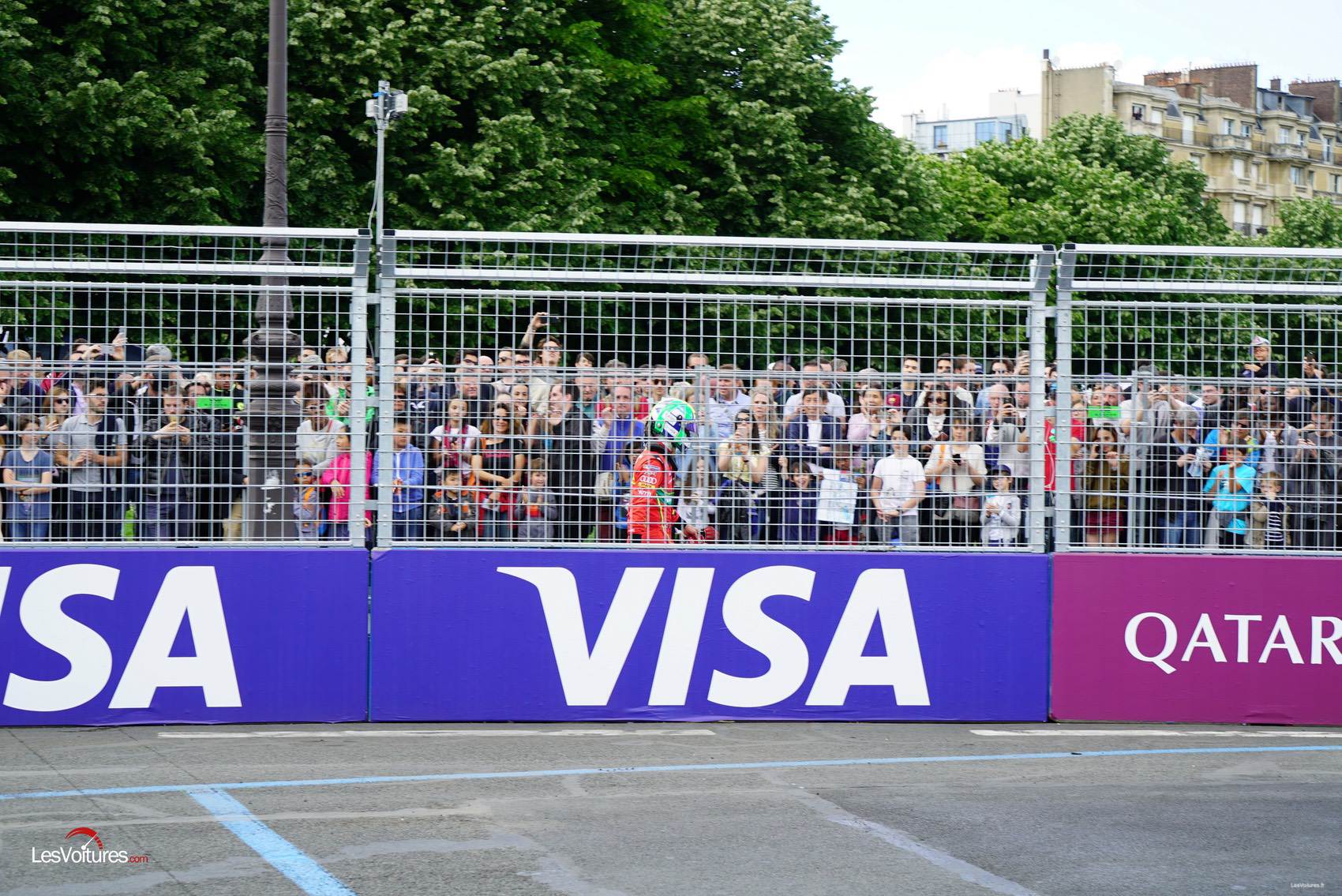 LesVoitures.com était sur place aujourd’hui sur cet ePrix parisien. Nous avons pu constater de nombreuses améliorations en termes de visibilité pour les spectateurs comparativement à l’ePrix 2016 très décevant. Ainsi, les spectateurs présents en masse ont profité d’un superbe spectacle dans les meilleurs conditions car la seconde, et trop haute rangée des panneaux publicitaires, n’a pas été montée comme l’année dernière.