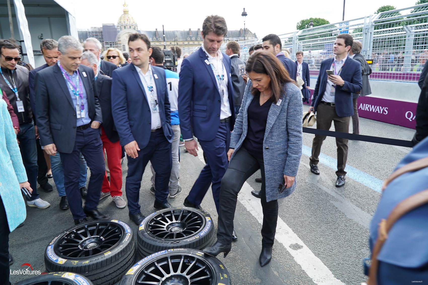 De plus, pas moins de 21 écrans géants ont parsemé le tracé. Enfin, l’eVillage avait été agrandi. L’ePrix de Paris 2017 est donc une réussite. « Réussite » dont la maire de Paris n’a pas manqué de profiter entourée de Jean Todt et de la nouvelle ministre des sports, Laura Flessel. Anne Hidalgo a même vérifié la pression des pneus des Renault avec ses talons (à voir en photo au terme de ce sujet).