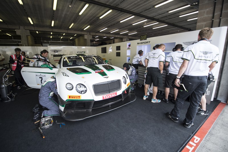 Les deux Bentley Continental GT3 engagées ne se positionnent que 29ème et 30ème de cette séance d’essais avec un meilleur tour en 2’24 »496. Une séance marquée par la violente sortie de piste d’Alvaro Parente, dans le double gauche de Pouhon, au volant de la McLaren MP4-12C du Art Grand Prix. Une auto alors créditée du 25ème temps.