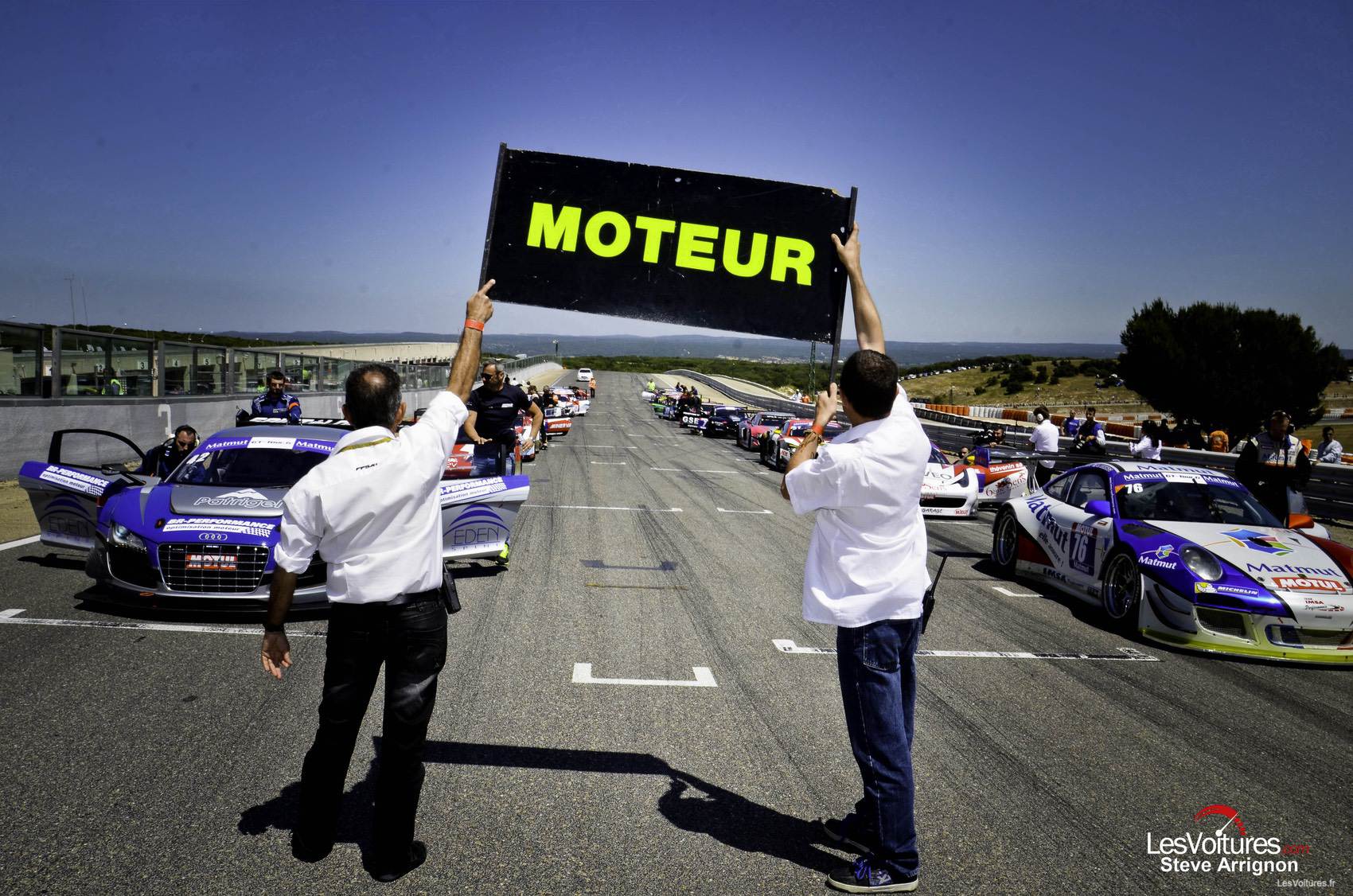Parti depuis la pole, Raymond Narac réalise un envol parfait à bord de la Porsche/IMSA Performance Matmut. A ses côtés sur la première ligne, David Hallyday suit au volant de l’Audi/Saintéloc, et emmène un peloton composé de la Ferrari/Sport Garage de Gilles Vannellet, et des Ferrari/Sofrev-ASP d’Eric Debard et Philippe Giauque. Leader, Raymond Narac creuse rapidement l’écart, au rythme de quasiment une seconde par tour !