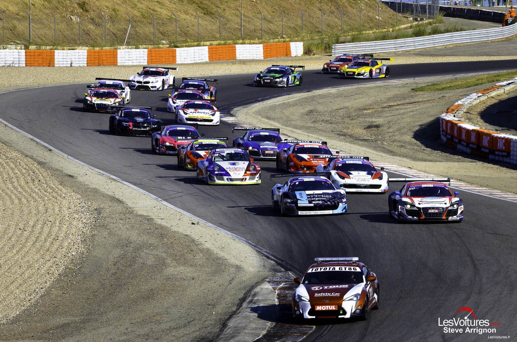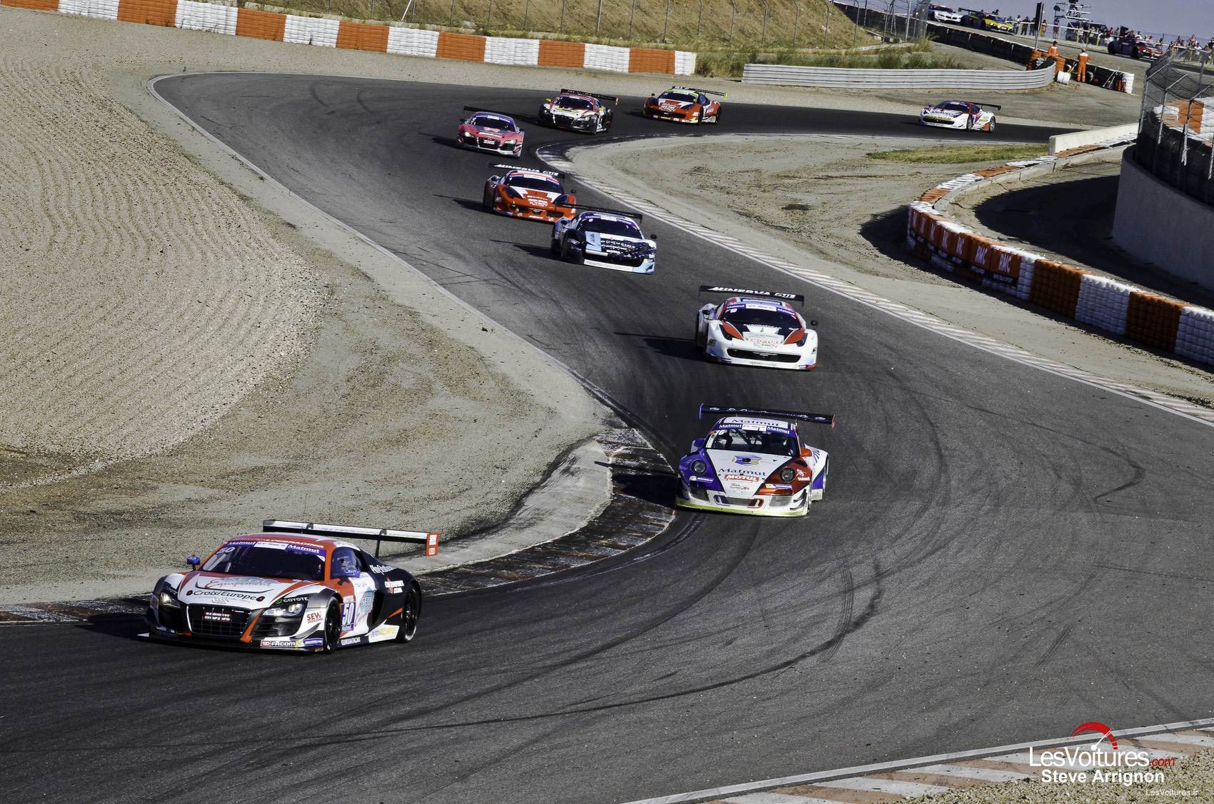La troisième place est occupée par Eric Debard, qui a pris la suite d’Olivier Panis chez Sofrev-ASP. Suivent l’Audi/Saintéloc de David Hallyday et la Porsche/IMSA Performance-Matmut de Raymond Narac. Les deux hommes entament un sérieux duel alors que Laurent Coubard est victime d’une violente sortie de piste à bord de sa Mercedes-Benz SLS AMG GT3.