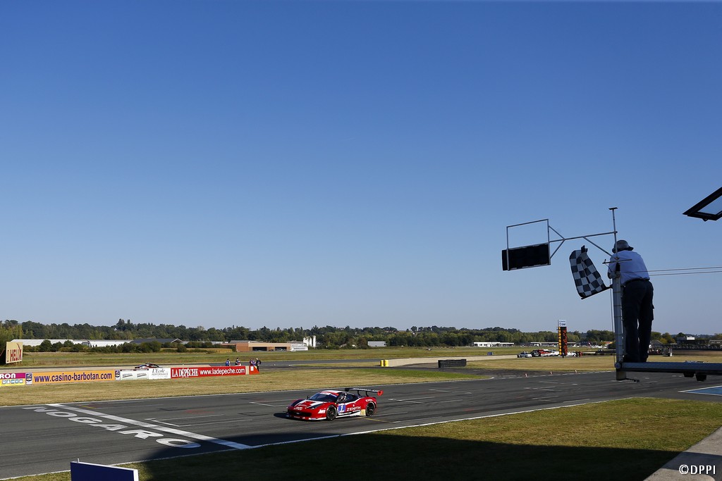 Quelques gouttes de pluie sont signalées mais cela ne perturbe pas Henry Hassid qui réduit l’écart tour après tour sur Jean-Luc Beaubelique. La jonction entre le leader et son dauphin est définitivement faite à 13 minutes du drapeau à damiers. Hassid cherche l’ouverture et il trouve la faille à quatre tours de la fin en piquant son adversaire au freinage. Le Champion de France 2012 file vers la victoire, l’ordre de ses poursuivants n’évoluant que dans la dernière ligne droite. Alors que le duo Hassid/Parisy s’impose devant la Ferrari de Beaubelique/Badey et la seconde Audi/Sébastien Loeb Racing de Bervillé/Beltoise.
