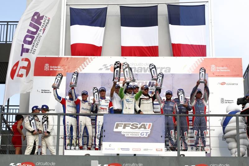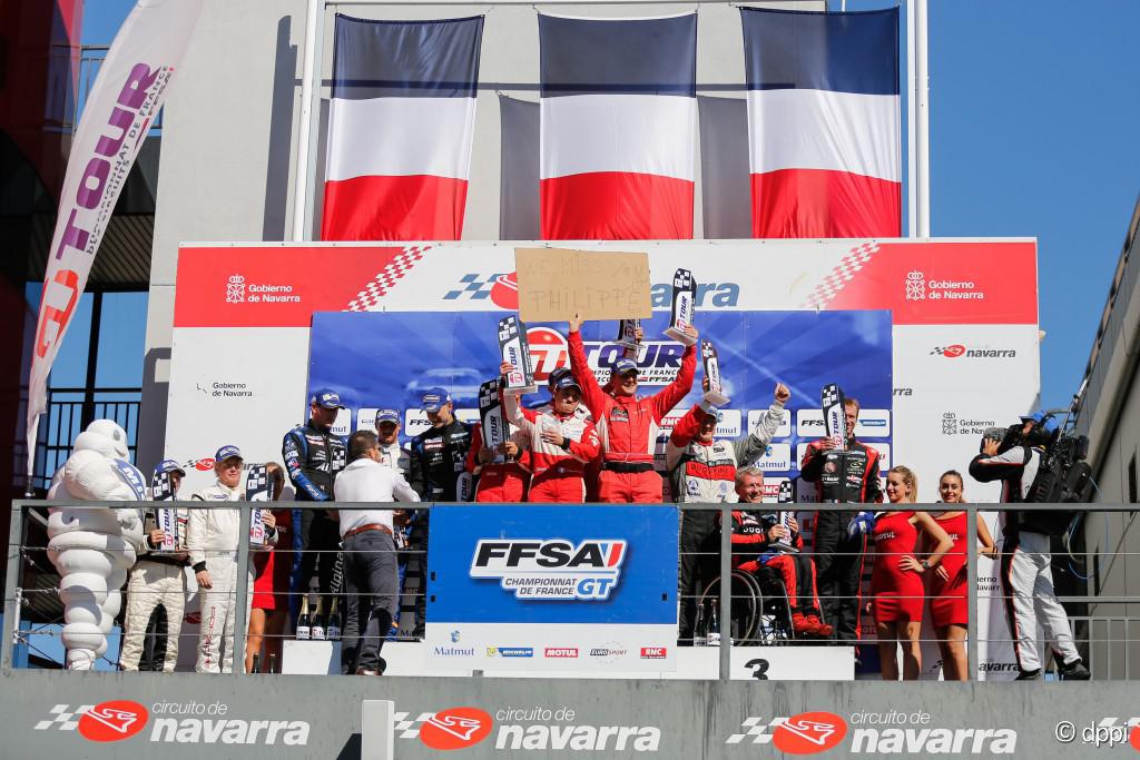 Après 90 minutes d’une épreuve disputée sur le soleil navarrais, StratégiC impose pour la deuxième fois sa Porsche avec le trio composé de Nicolas Misslin, Sacha Bottemanne et Benjamin Lariche. IMSA Performance-Matmut signe la bonne opération au classement général, avec la deuxième position d’Olivier Pernaut, Sébastien Dumez et Raymond Narac. Aux forceps, le Sébastien Loeb Racing place ses deux Audi dans le quarté : troisième rang pour Christophe Hamon, Christian Bottemanne et Lonni Martins, tandis que David Hallyday, Philippe Gaillard et Mike Parisy terminent au pied du podium. Auteur d’une belle prestation, Saintéloc Racing complète le Top 5 avec Valentin Simonet, Romain Monti et Pierre Sancinena. Réguliers, Fabien Barthez, Eric Debard et Olivier Panis se classent 6ème. Les Bottemanne père et fils sont donc ensemble sur le podium, mémorable !