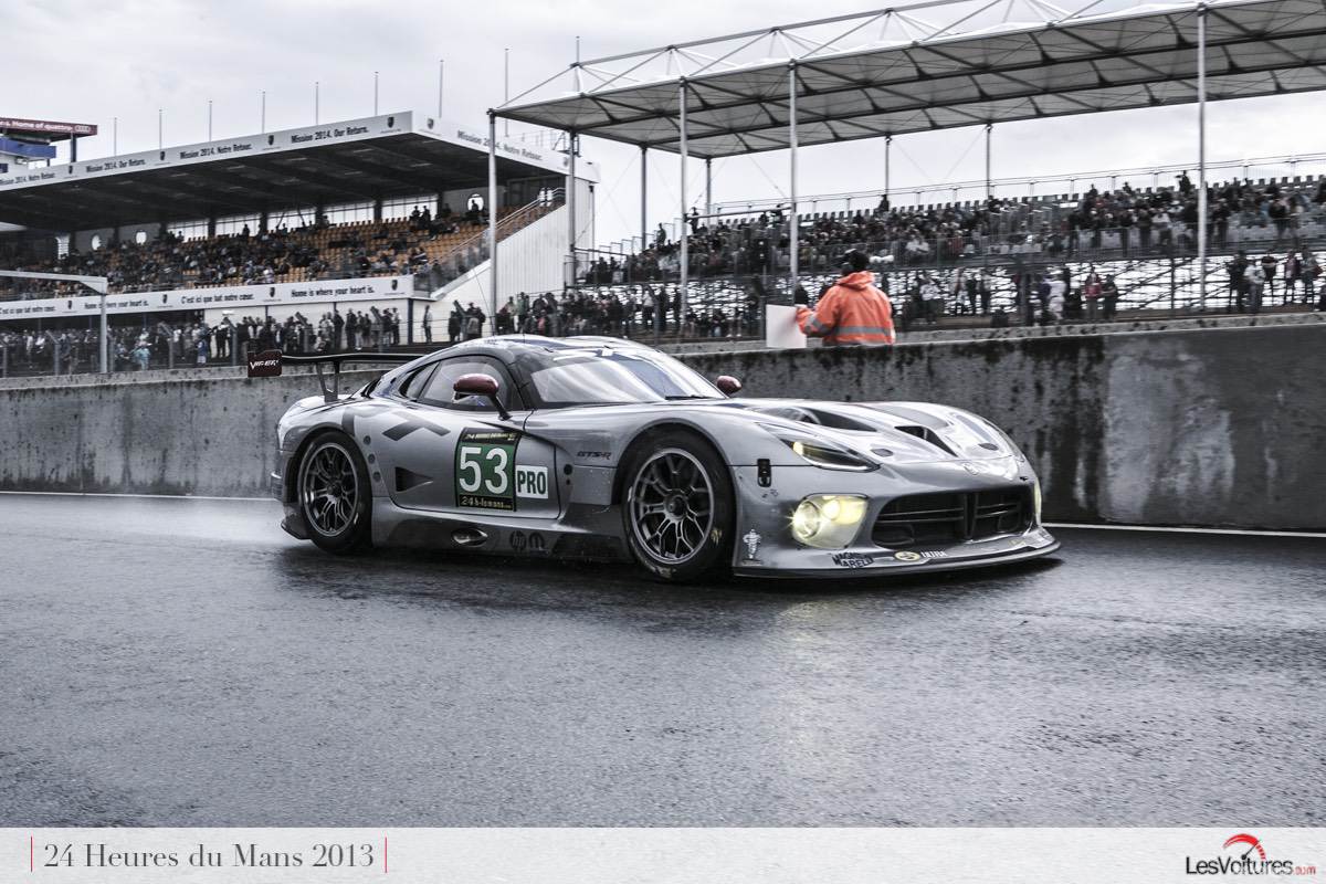 En proie à de sérieuses difficultés financières, Dodge a resserré les boulons notamment auprès de son département préparation et compétition, SRT. Ainsi, les deux Viper GTS-R initialement engagées pour Rob Bell/Kumo Wittmer/Jonathan Bomarito et Marc Goossens/Dominik Farnbacher/Jeroen Bleekemolen ne seront pas présentes dans la Sarthe. Avec la sensible progression enregistrée depuis le début de saison, nous ne pouvons que regretter cette absence tant les deux serpents de Detroit pouvaient prétendre à un résultat significatif. Et que dire du capital sympathie de ces deux superbes voitures auprès du public, la preuve avec la photo qui suit, déjà un lointain souvenir de l’édition 2013…