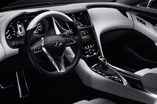 Superbement élancée, l’étude de style présentée au NAIAS de Detroit se démarque clairement des Audi ou autres BMW par son originalité maîtrisée. La marque japonaise profite de la reconnaissance des designs des Q50 et du nouveau Q70 pour aller encore plus loin.