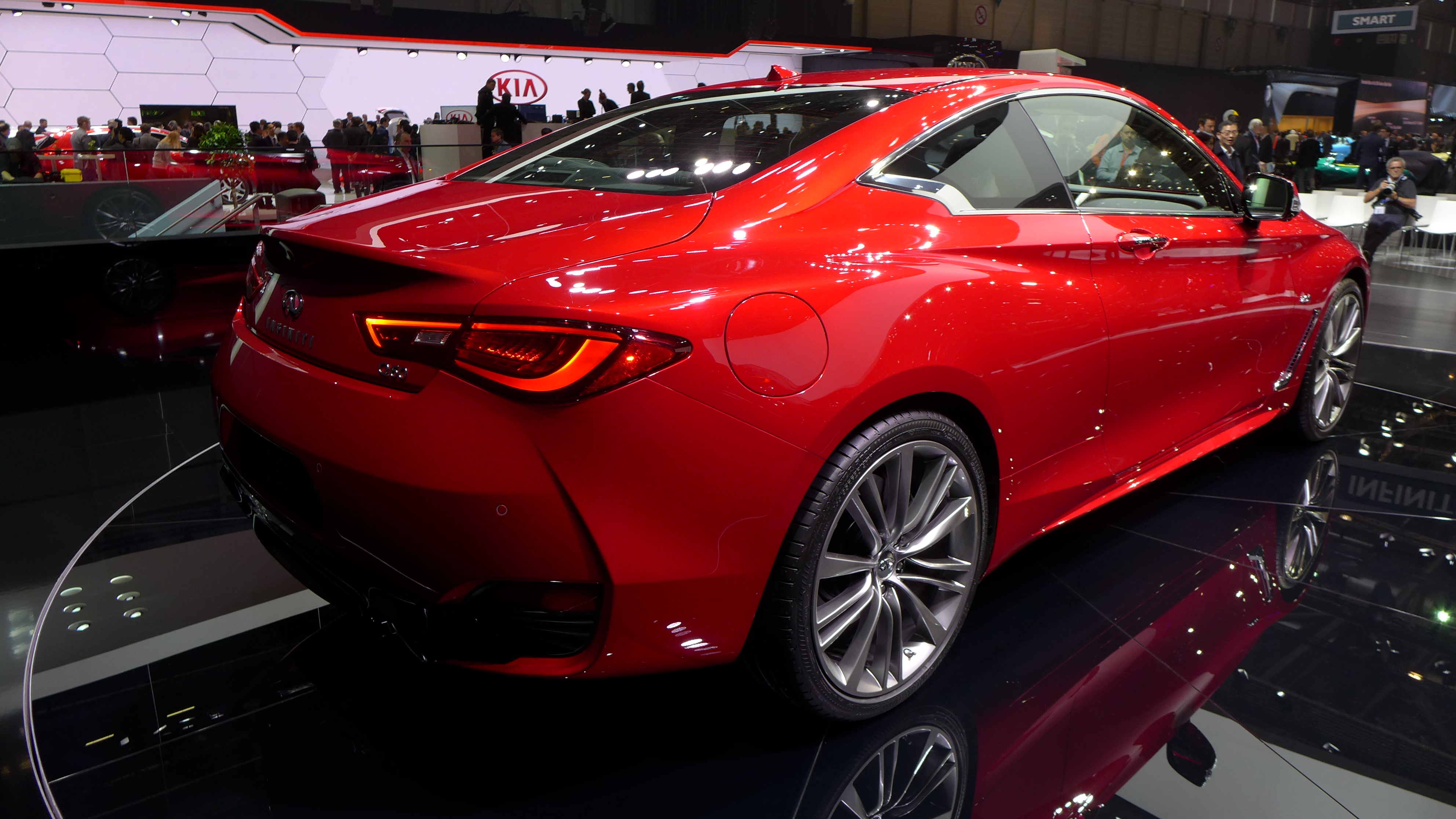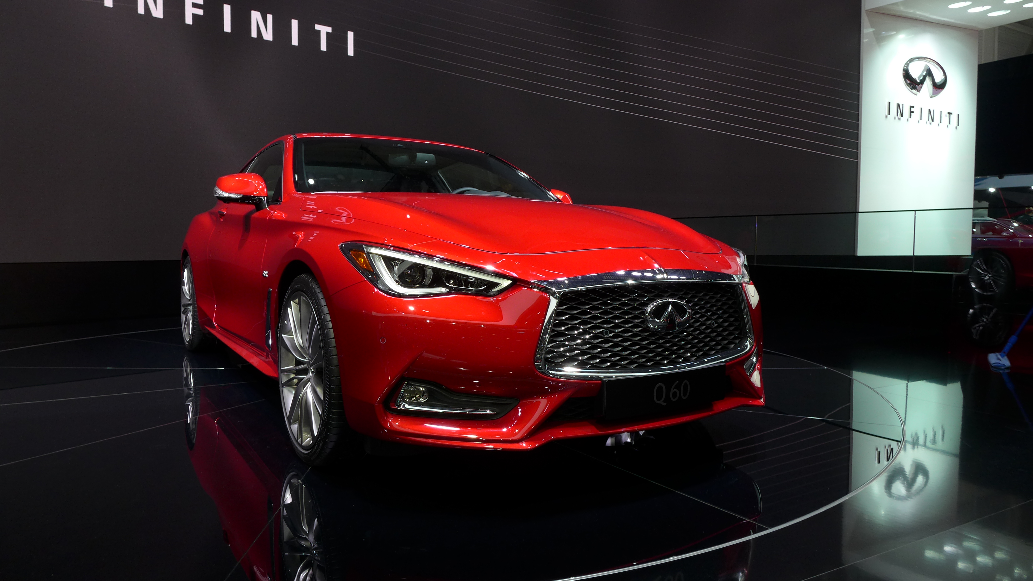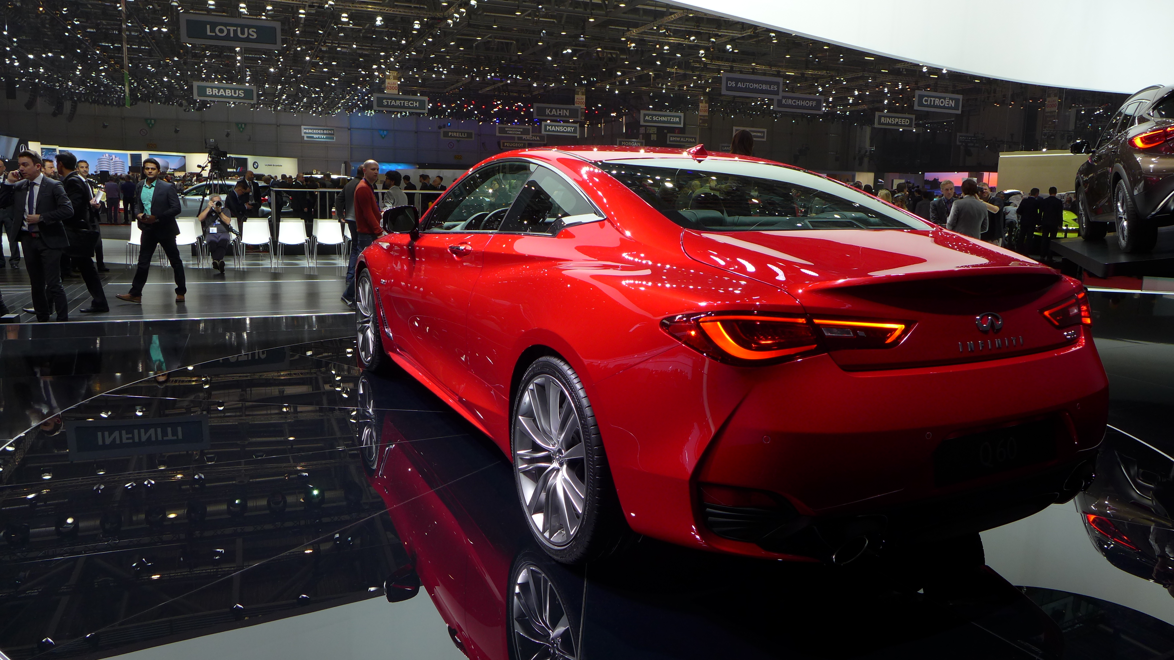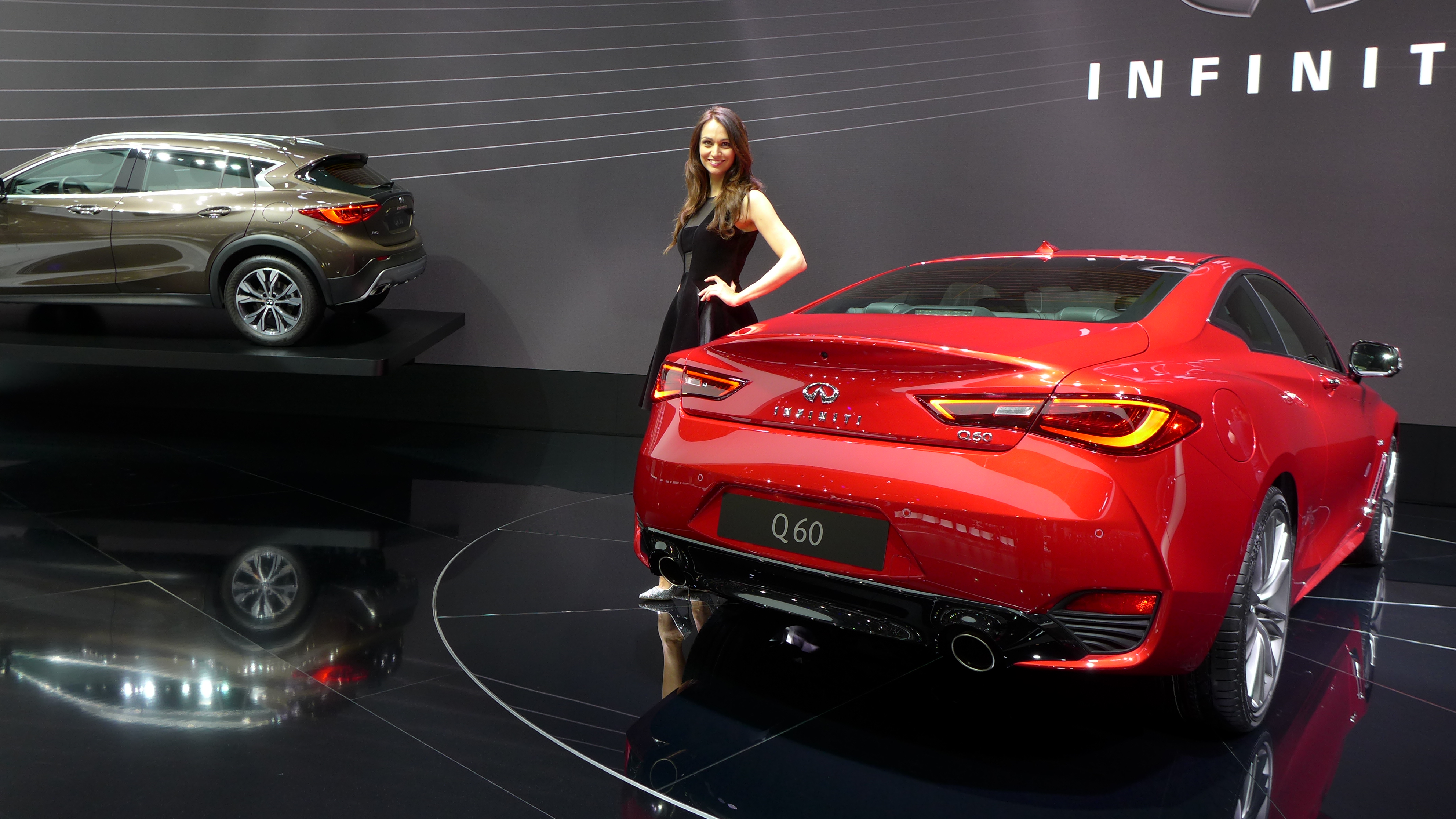 L’équation se confirme en ce moment même au salon de Genève pour sa présentation européenne où nous venons de découvrir le symbole de la nouvelle identité Infiniti sur le stand du constructeur. La Q60 respecte ses engagements et assure le spectacle sur le segment très disputé des coupés luxueux et sportifs.
