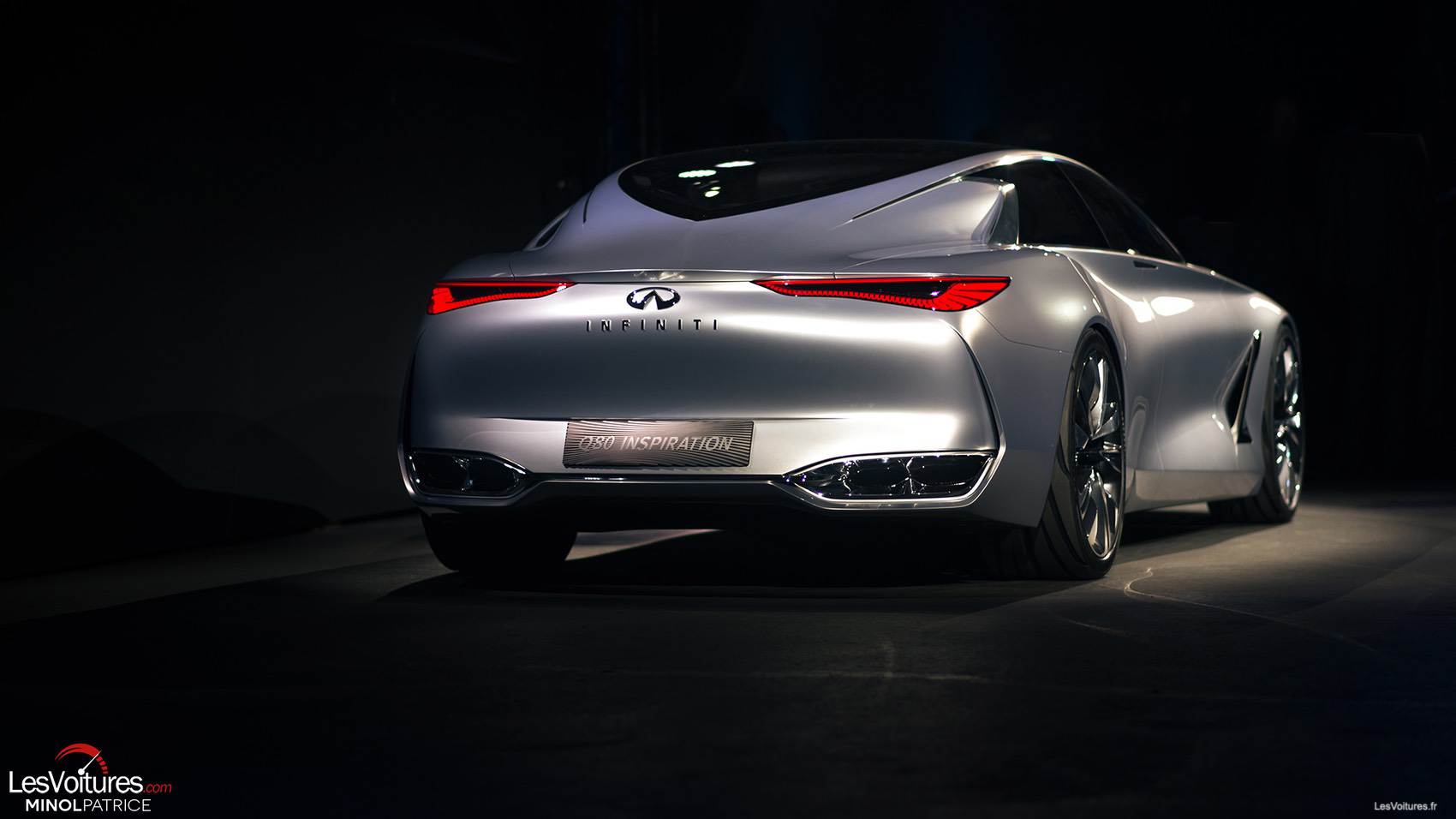 Cela peut être interprété comme un signe fort de la marque Premium de Nissan : Infiniti veut jouer dans la cour des grands avec la Q80 qui préfigure une future berline hyper haut de gamme. Preuve en est, les dimensions de la Q80, soit 2027 mm de large, 5052 mm de longueur pour une hauteur de 1350 mm.