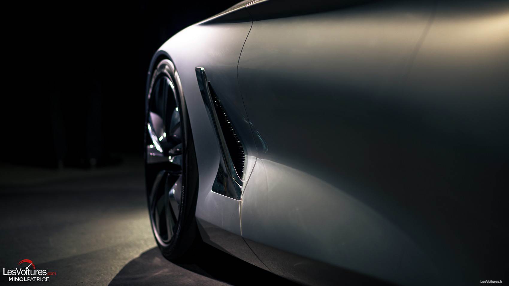 Les coursives du stade Jean-Bouin, telles celles d’une arène de gladiateurs, offrent un décor d’une beauté dure et froide à l’étude de style japonaise. Une antre parfaite pour découvrir en avant-première la Q80 Inspiration. Naturelle et moderne à la fois, la Q80 propose une fluidité de lignes rarement atteinte pour un concept-car.