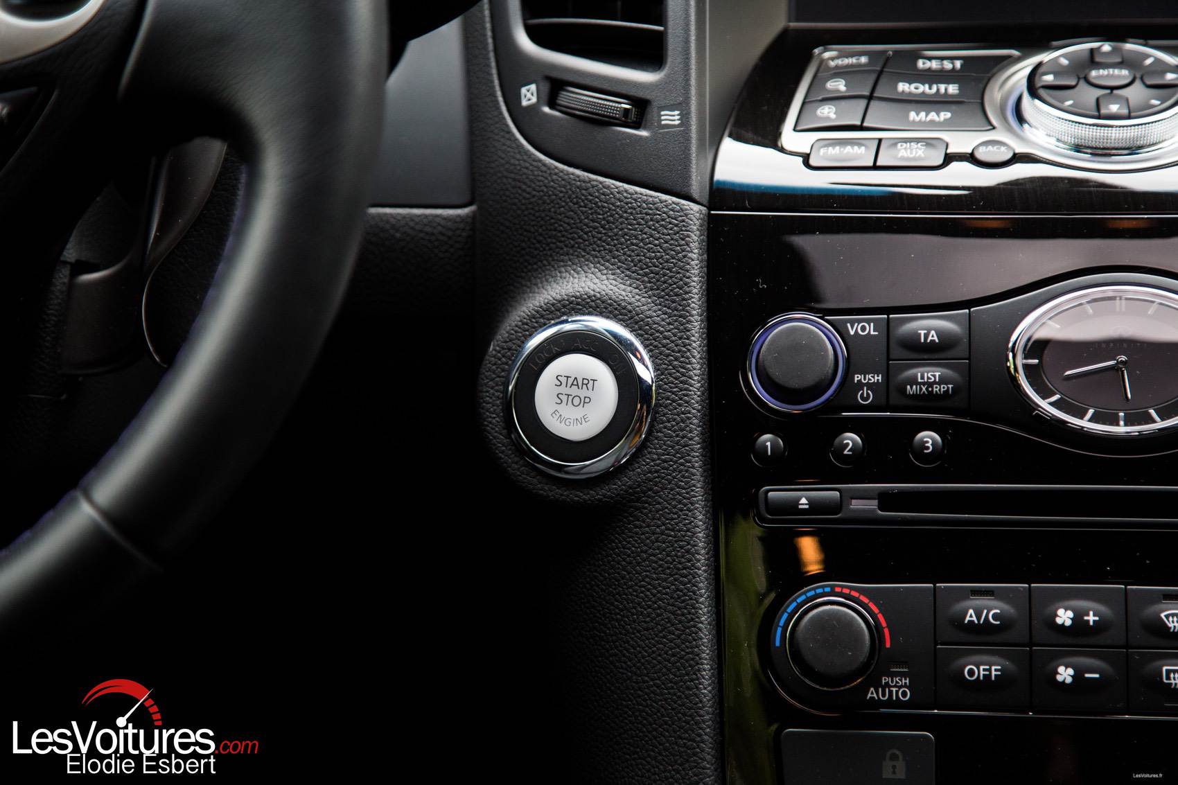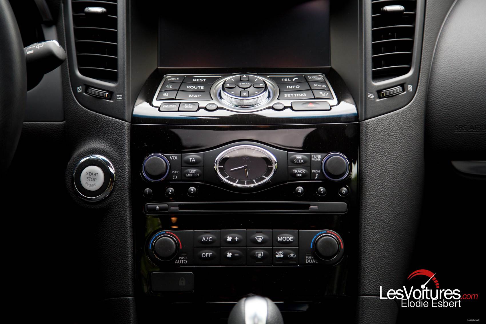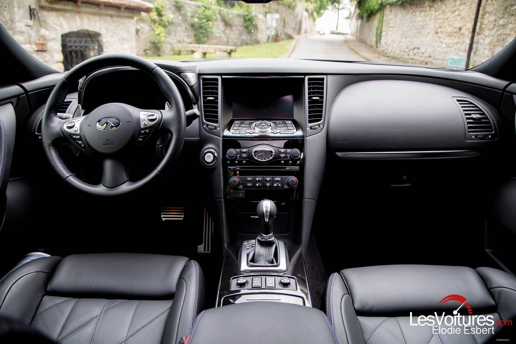 Cependant, notons tout de même une petite ombre au tableau. Lorsque nous entrons dans l’habitacle, les méfaits du temps ont sérieusement attaqué le QX70 malgré cette remise au goût du jour. Les boutons de la console centrale en sont l’exemple le plus frappant. Alors que design extérieur se défend encore très bien parmi les rois du segment, l’instrumentation a pris un sacré coup de vieux. Quant à la finition et au confort ressenti, ils sont plus que corrects.