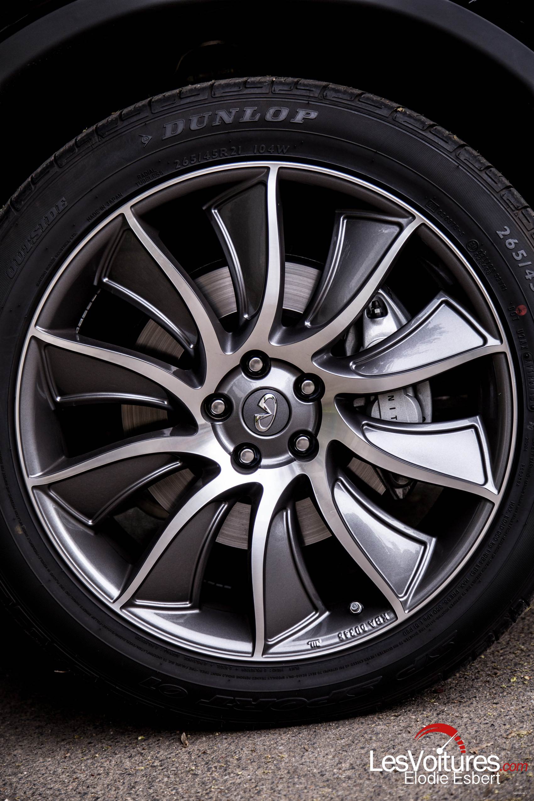 Au premier abord, l’effet de style mis en avant par ce QX70 Ultimate nous avait déjà conquis. Il faut avouer que les lames avant et arrière et les très réussies jantes Turbine Aluminium Anthracite en 21’’ enfoncent le clou. Rappelons que cette nouvelle version du SUV a été dévoilée à l’occasion du salon de Francfort 2015.