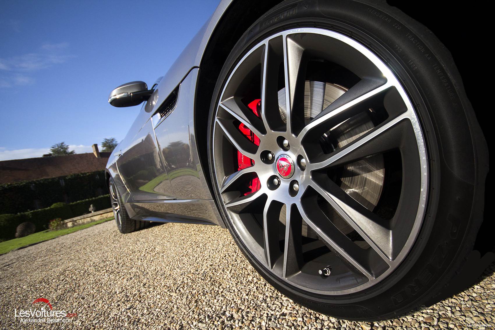 Intéressons-nous maintenant aux performances chiffrées de la F-TYPE R Coupé. Son V8 à compresseur d’une cylindrée de 5,0 litres développe 550 chevaux et un couple de 680 Nm. Elle abat le 0 à 100 km/h en 4,2 s et peut atteindre 300 km/h. Les consommations étant annoncées pour 15,3 l/100 km en ville, 8,0 l/100 km en dehors sur autoroute et 10,7 l/100 km en cycle mixte. Les émissions de CO2 impactent fortement le prix de la F-TYPE R Coupé qui débute à 107 660 € puisque les 255 grammes émis au kilomètre portent le malus écologique à 8 000 €.