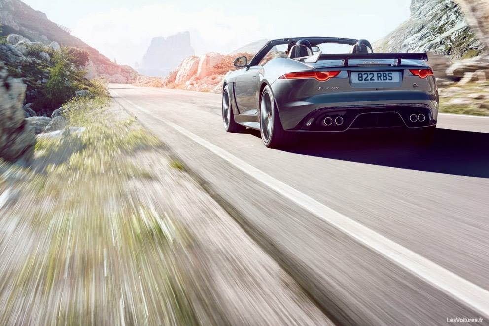 Ces optimisations ont pour but de coller la F-TYPE SVR à la route tout en optimisant la circulation des flux d’air et le refroidissement du V8 5.0 l. Ce dernier voit sa puissance grimper à 575 ch. C’est 25 de plus comparativement à la F-TYPE R. Le couple de l’auto évolue quant à lui de 680 à 700 Nm. La F-TYPE SVR profite bien sûr de la transmission intégrale et son système de freinage est en carbone-céramique. Toujours d’après les informations qui ont filtrées sur internet, cette furieuse F-TYPE abattrait le 0 à 100 km/h en 3,7 s pour une vitesse maximale de 322 km/h.